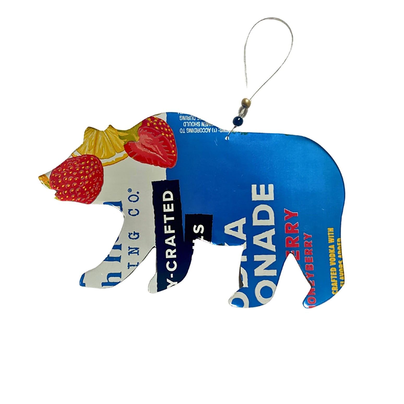 Add a touch of whimsy to your holiday decor with this Aluminum Can Ornament. One side is hand-painted by Seatree Studio, each one is unique with slight variations in color, while the other is unpainted to show it was made from recycled materials. Perfect for anyone looking for a sustainable and playful addition to their Christmas tree. (Bead colors and backing are random and will vary).
