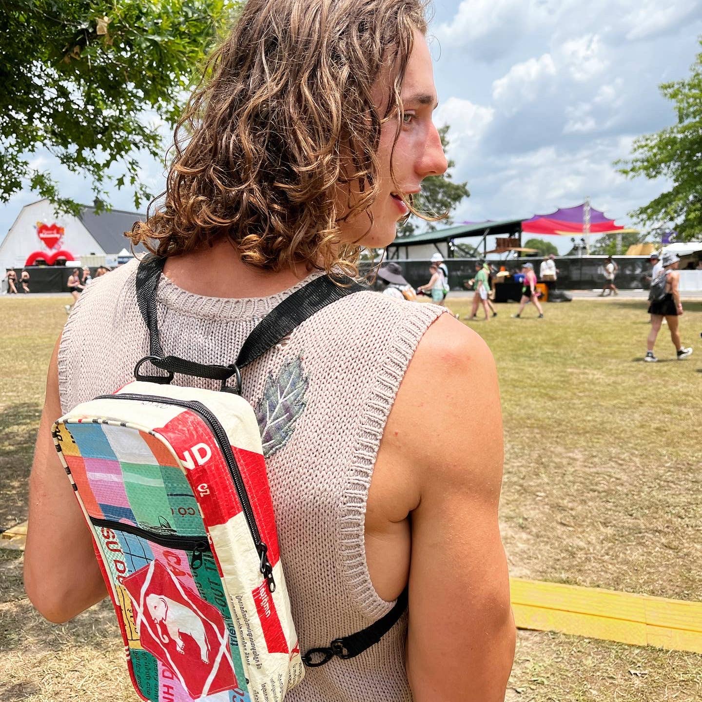 The Remix Sling from Cement6 was a huge hit for its first summer in Provincetown! The Remix is is a blend between a small backpack, a sling, and a crossbody. With a convertible strap and four heavy-duty D-rings, this bag can be worn multiple ways. Outside it has a zipper pocket on the front and a slip pocket on the back. Inside the roomy main compartment, you'll find slots for cards and a second pocket with a zipper.