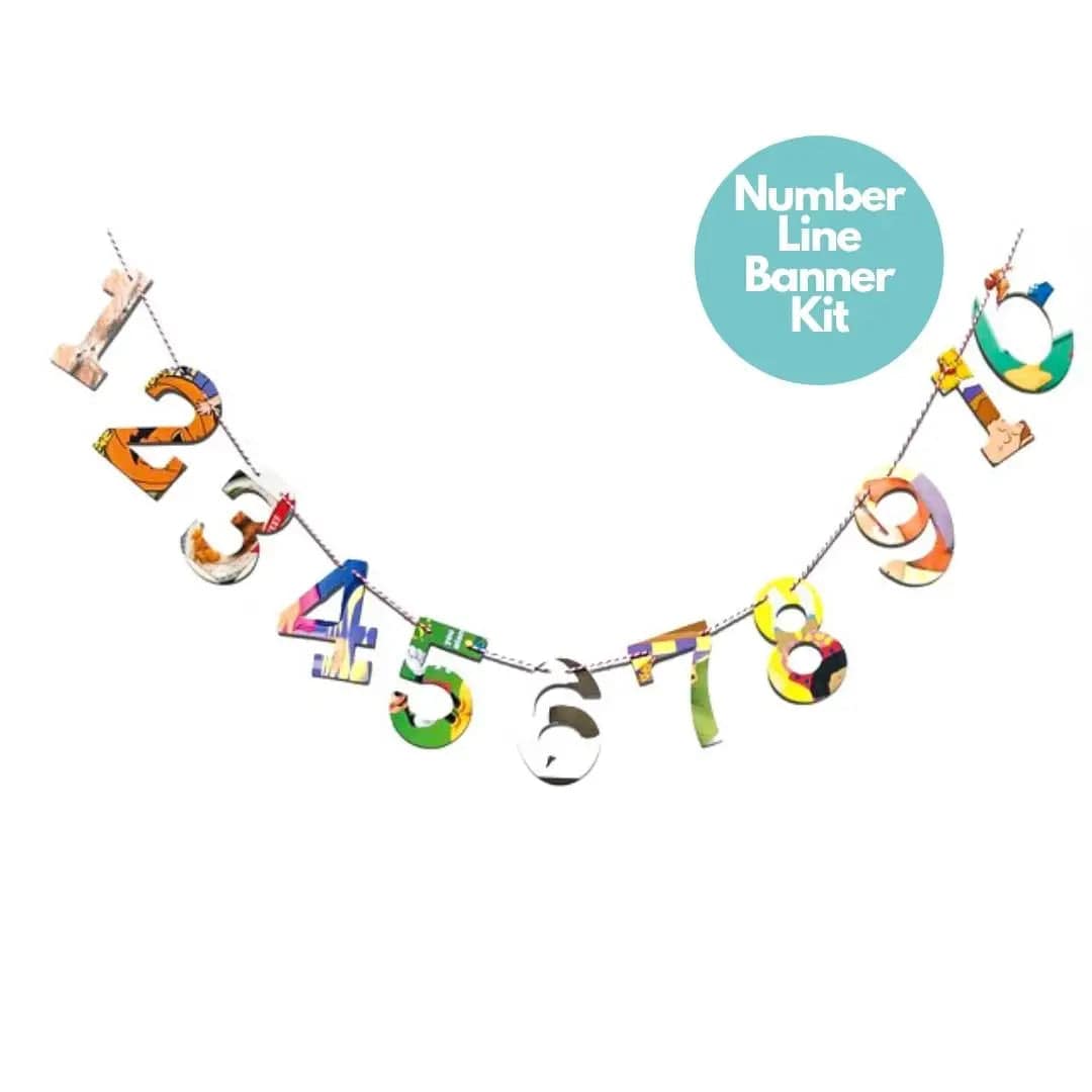 Perfect for preschoolers and classrooms, this Alphabet Garland is a thoughtful gift for new parents, teachers, and toddlers alike. This kit is sustainably handmade from the sturdy and colorful pages of baby board books. Made with materials diverted from the landfill, each kit is comprised of two yards of string along with an entire alphabet of pre-punched and brightly colored four-inch-tall numbers from one to twn just waiting to be strung together. It's a decoration, an activity, and a learning aid all in one!