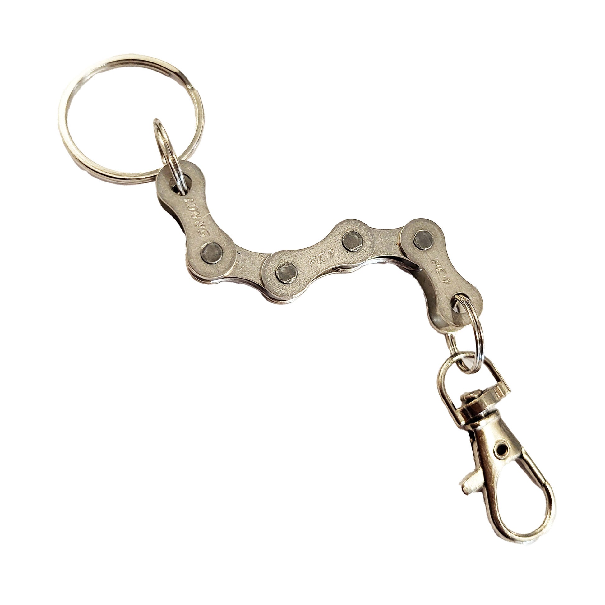 Perfectly cleaned and sprayed to resist rust, these keychains provide a secure place for any keys, and give some added motivation to never lose them again! We make these in Provincetown, from the links removed from our Bike Chain Bracelet, which, in turn is made in the UK. Includes a swivel snap clip on one end and a 1" split key ring on the other.