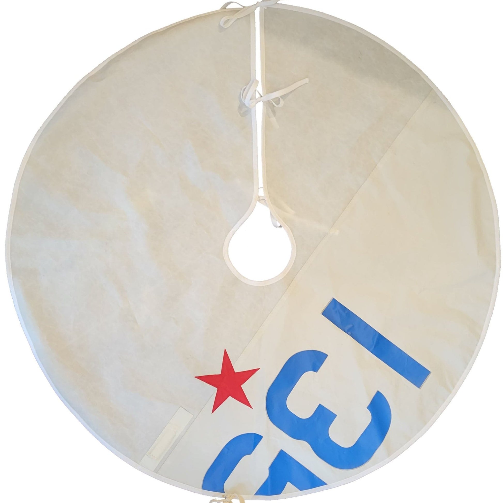 D. Bozak makes these beautiful Christmas Tree Shirts from used boat sails and upcycled fabrics. Each of these truly one-of-a-kind pieces is cut by hand and individually sewn by the creator in her home in Massachusetts. These skirts measure 48 inches across when flat—ideal for use with a tree up to 7½-feet-tall—and can be washed in cold water and line dried. Minor imperfections from the original materials add to the character.