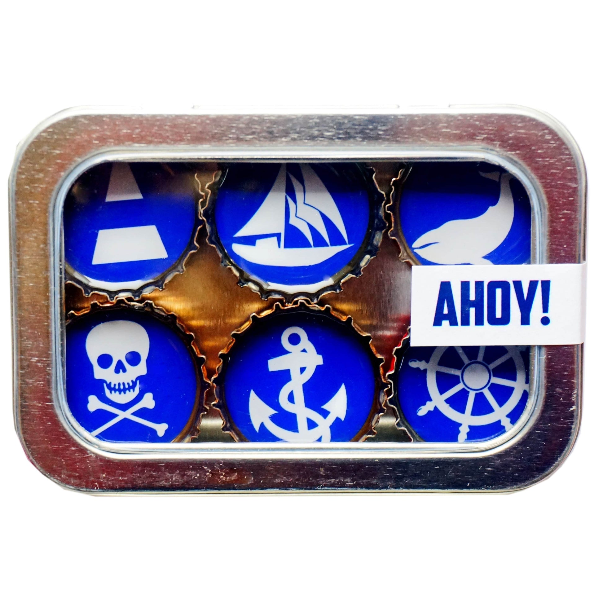 These six-pack sets of themed magnets are handmade in the USA from recycled bottle caps. Kate's Magnets pours eco-conscious epoxy over the image creating a glassy finish. These magnetic expressions make fabulous and unique gifts and can be used in the kitchen, office, or on any magnetic surface. Each magnet set comes in the display tin (just like in the picture).