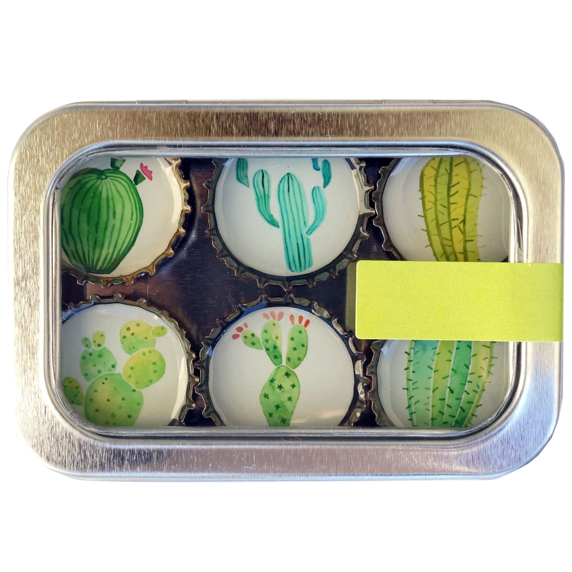 These six-pack sets of themed magnets are handmade in the USA from recycled bottle caps. Kate's Magnets pours eco-conscious epoxy over the image creating a glassy finish. These magnetic expressions make fabulous and unique gifts and can be used in the kitchen, office, or on any magnetic surface. Each magnet set comes in the display tin (just like in the picture).
