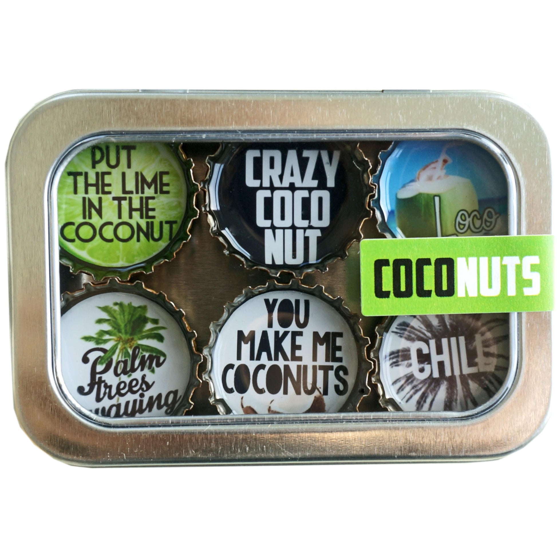 These six-pack sets of themed magnets are handmade in the USA from recycled bottle caps. Kate's Magnets pours eco-conscious epoxy over the image creating a glassy finish. These magnetic expressions make fabulous and unique gifts and can be used in the kitchen, office, or on any magnetic surface. Each magnet set comes in the display tin (just like in the picture).