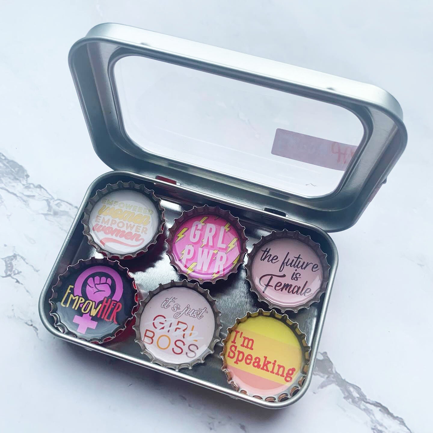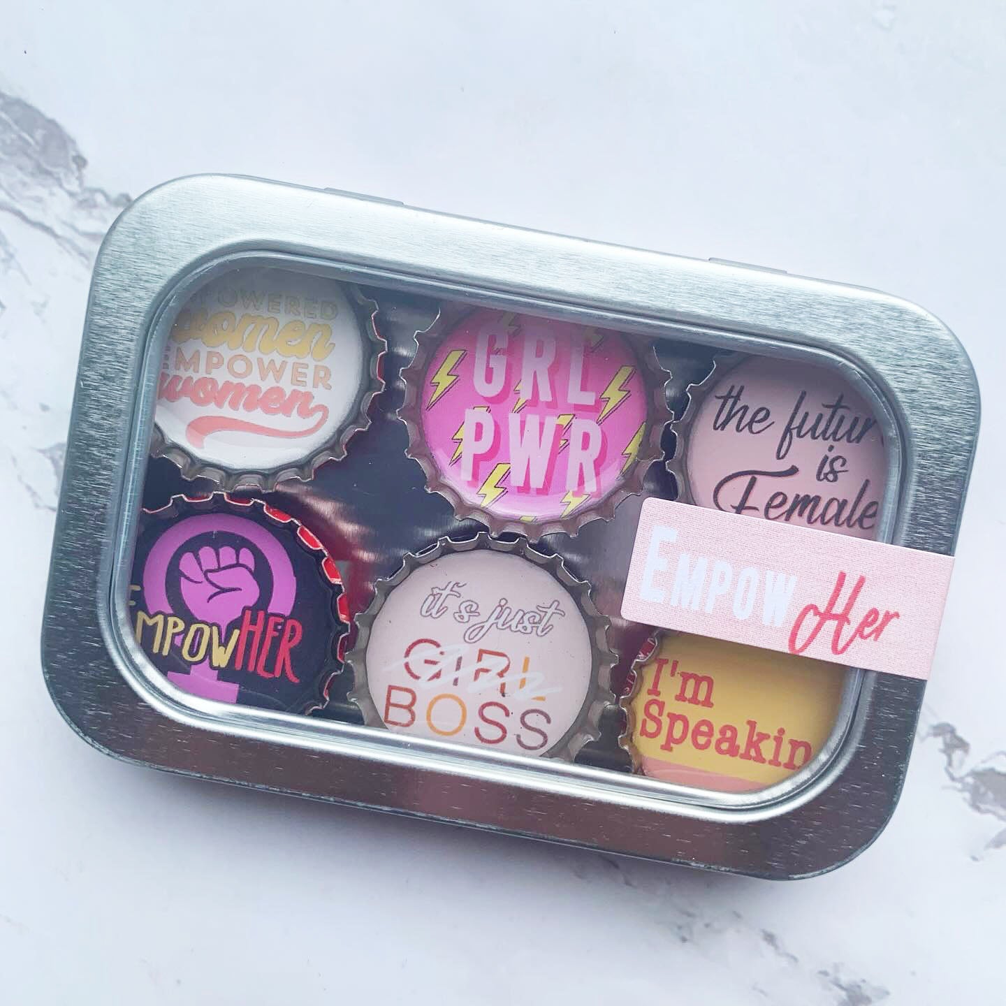 EmpowHER is a set of six recycled bottle cap magnets created with Provincetown Women’s Week as the inspiration!