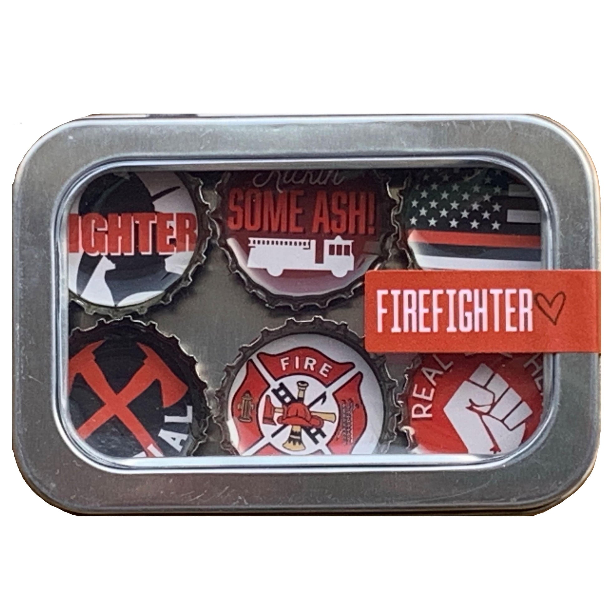 These six-pack sets of themed magnets are handmade in the USA from recycled bottle caps. Kate's Magnets pours eco-conscious epoxy over the image creating a glassy finish. These magnetic expressions make fabulous and unique gifts and can be used in the kitchen, office, or on any magnetic surface. Each magnet set comes in the display tin (just like in the picture).