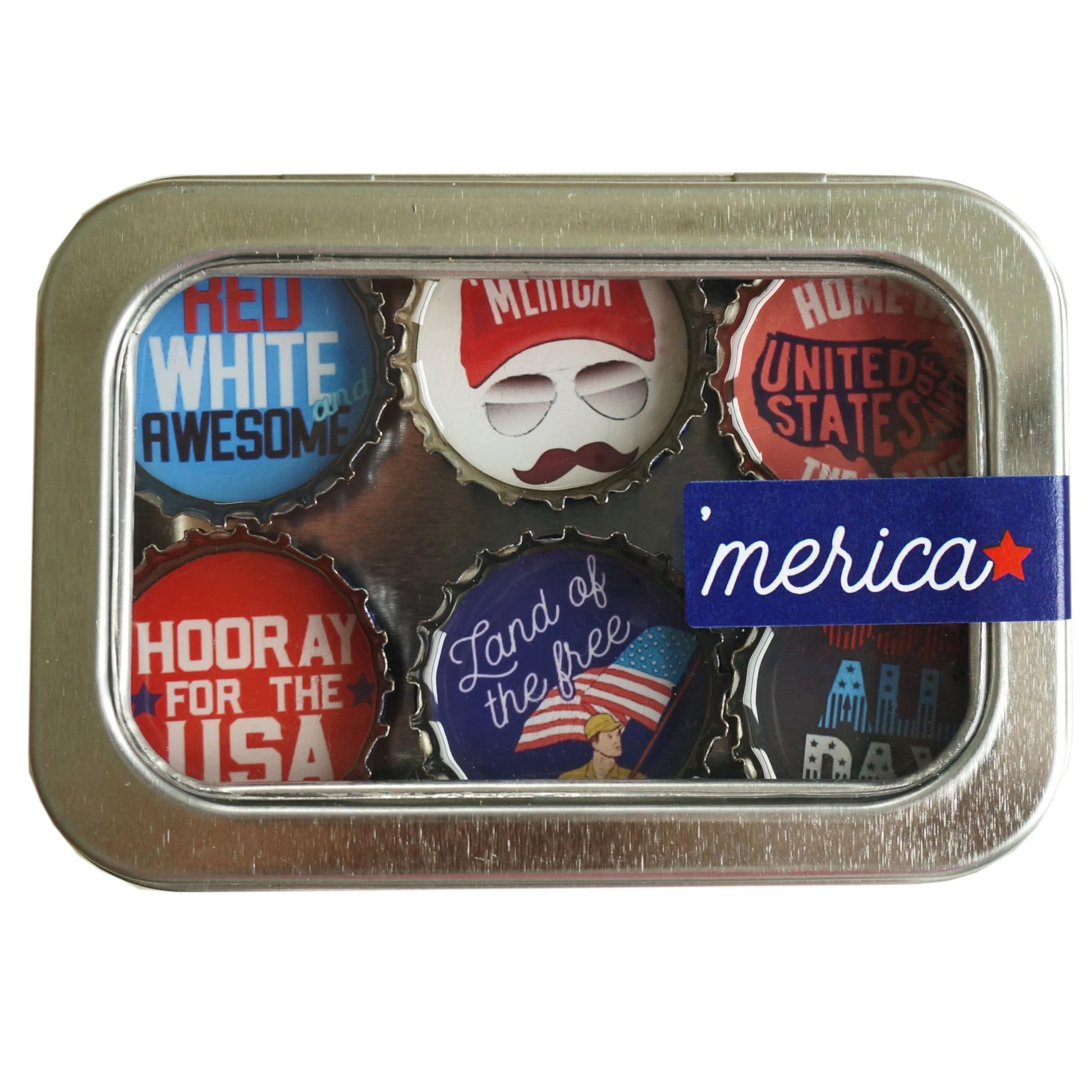 These six-pack sets of themed magnets are handmade in the USA from recycled bottle caps. Kate's Magnets pours eco-conscious epoxy over the image creating a glassy finish. These magnetic expressions make fabulous and unique gifts and can be used in the kitchen, office, or on any magnetic surface. Each magnet set comes in the display tin (just like in the picture).