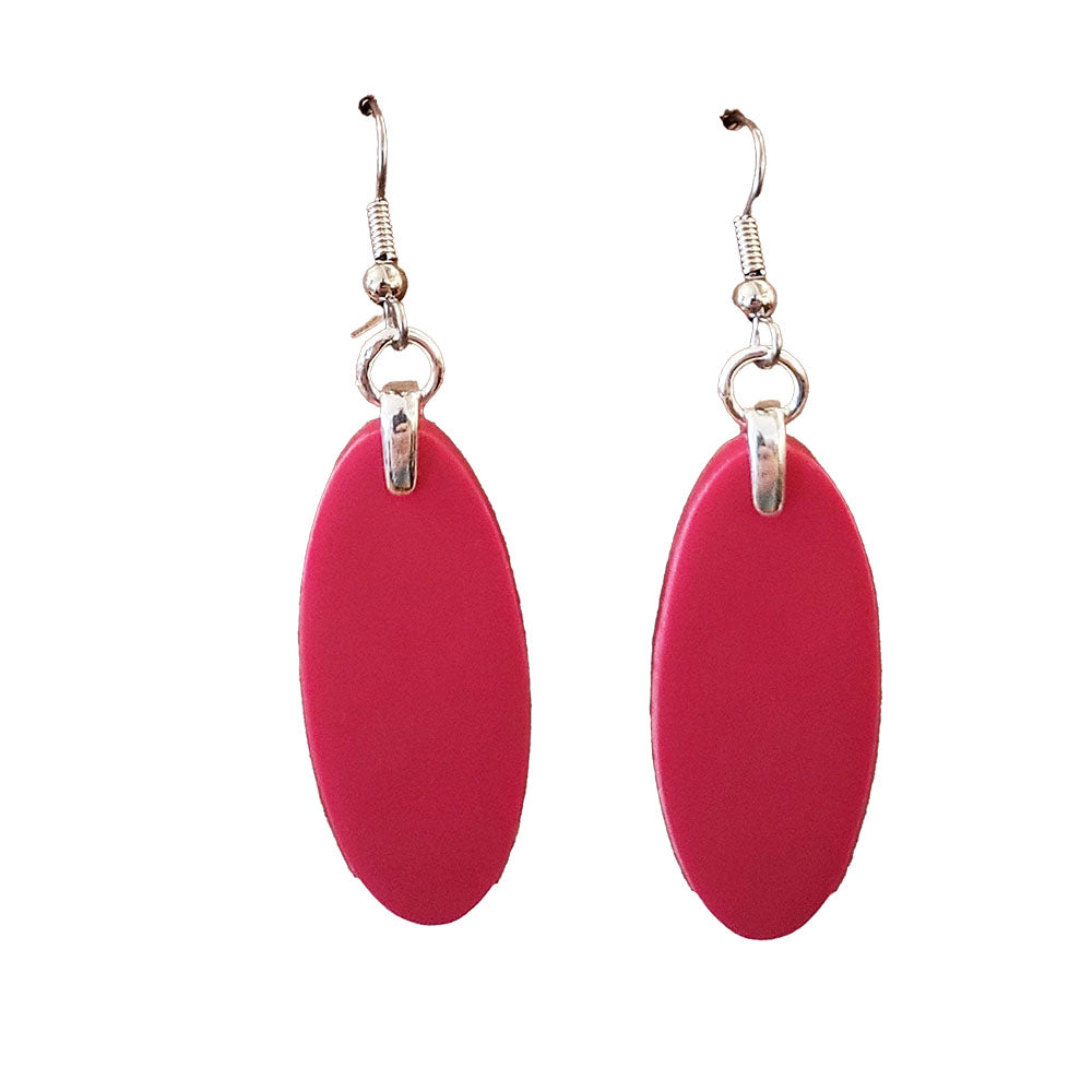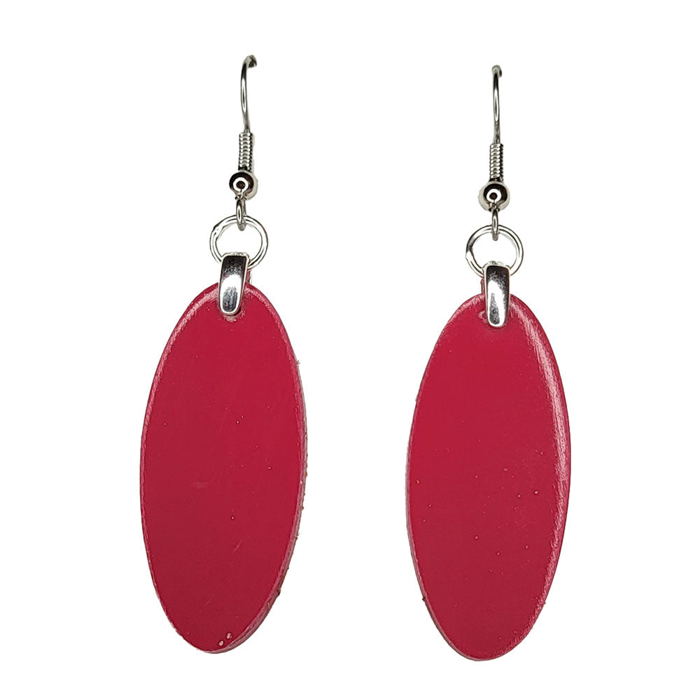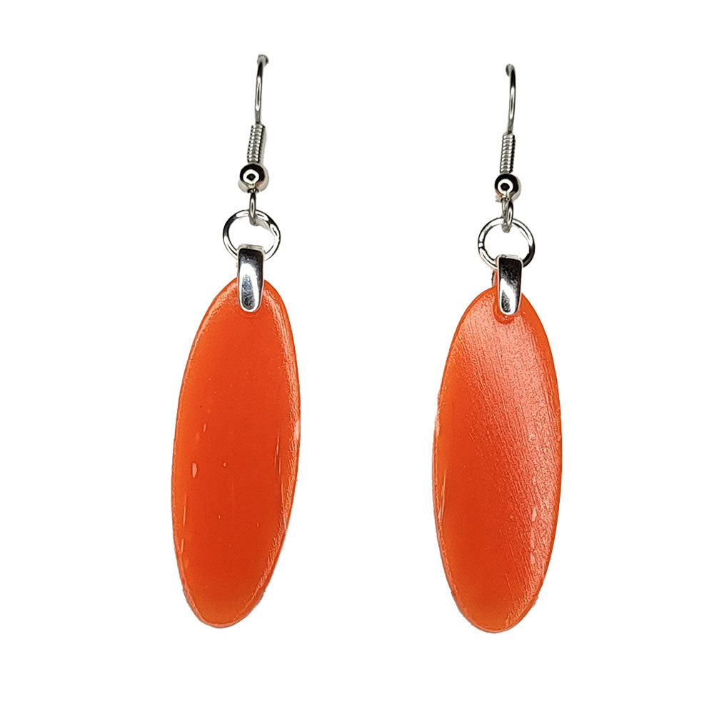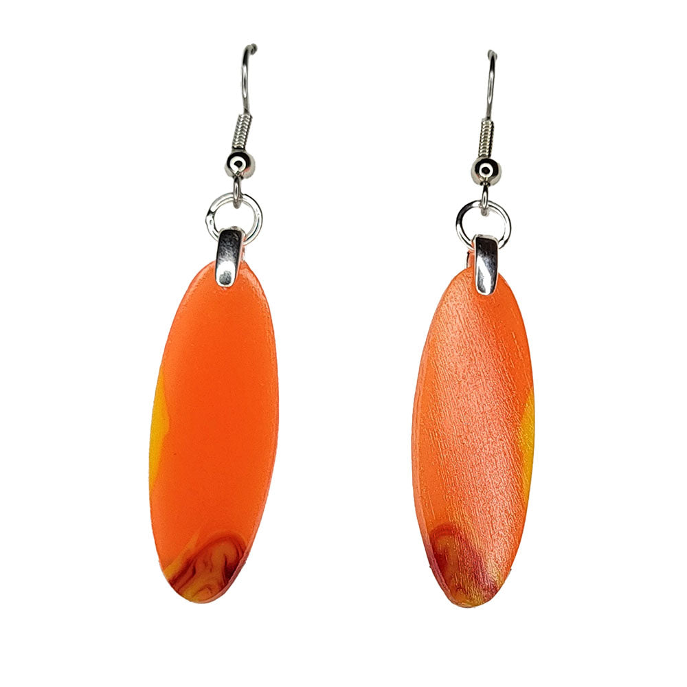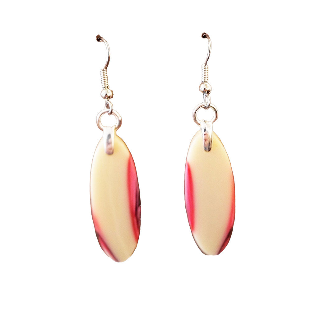 These beautiful earrings are handmade from Bowlerite, which is the name given to the outer shell of salvaged bowling balls. When the balls are retired, pieces of the outer layer are cut, shaped, and polished to a stone-like appearance. Bowlerite is even referenced on some gemological websites.