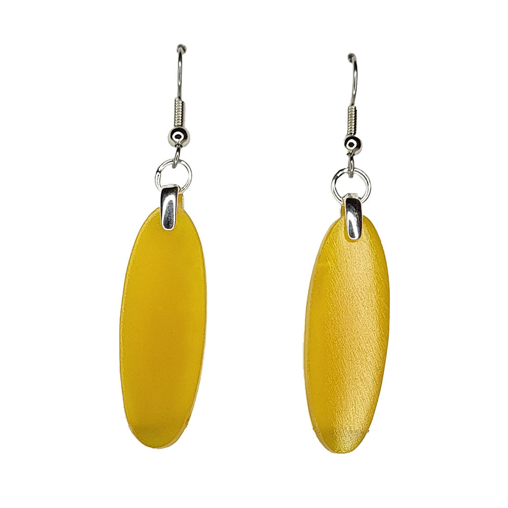 Each pair—indeed, each earring—is a true one-of-a-kind, handmade in Washington state. These are very lightweight and about 1¼" to 1½" long, give or take ⅛". The wires are hypoallergenic surgical stainless steel.