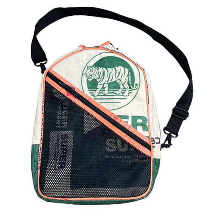 Carry it your way—with the removable, adjustable strap, it easily converts from crossbody to shoulder bag to handheld. Each one is made from upcycled cement, fish food, and vegetable polypropylene bags that worked hard in their past lives. Expect unique color variations, signs of its journey, and patterns that serve serious personality. Imperfections are part of the story—and part of the charm.