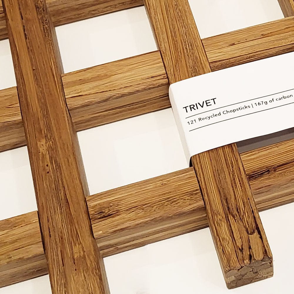 Say goodbye to hot-plate chaos with ChopValue's Chopsticks Trivet, an eco-friendly masterpiece made from 121 recycled chopsticks collected from Boston-area Chinese restaurants! This ultra-sturdy, heat-resistant trivet is perfect for your pots, pans, and platters. This grid-shaped beauty isn't just a unique conversation piece; it provides protection for your countertop or table, and has non-slip rubber feet.