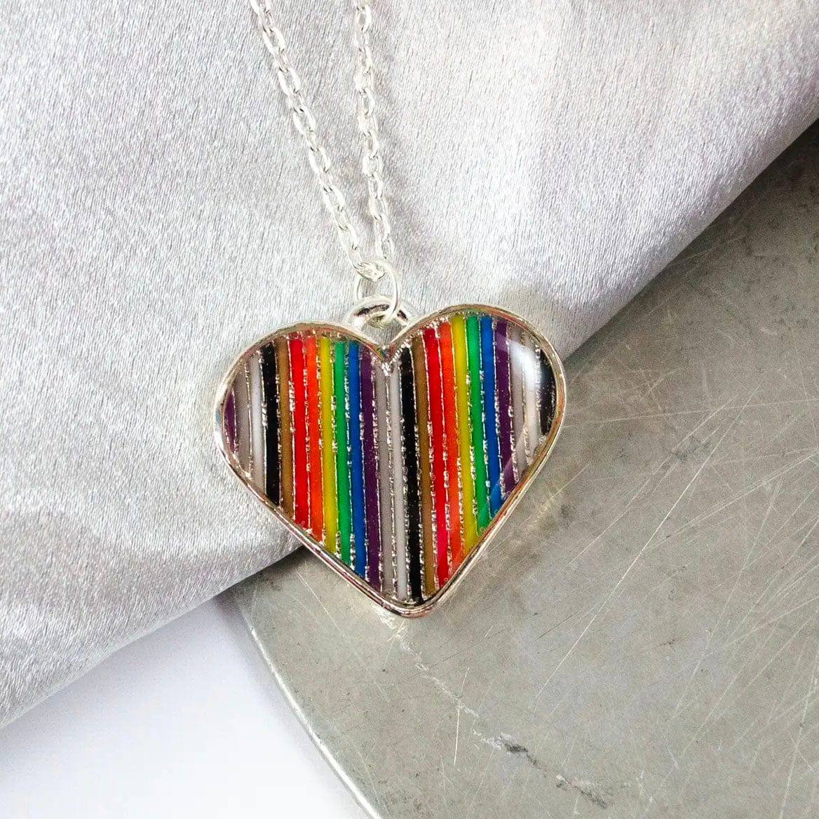 Ribbon cable was cut to inlay in a silverplated heart-shaped setting. Everything is covered in resin which provides protection and a beautiful finish. The pendant is 1 1/4" (28 mm) tall. It is attached to the included 18" silver plated cable chain.