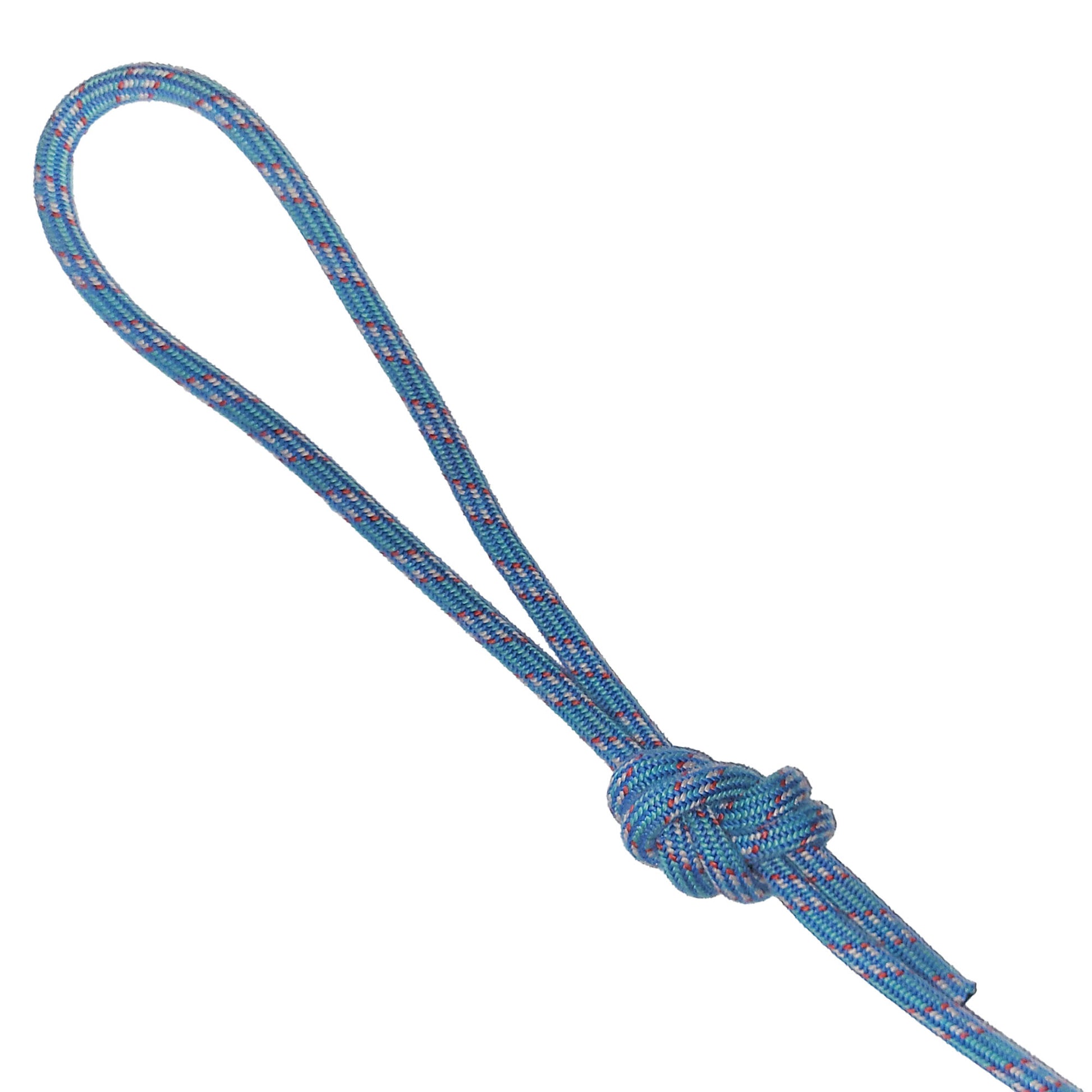 Each leash measures four feet long from the top of the loop to the end of the hook. The rope itself is roughly a foot longer, so the leash can be made shorter or slightly longer by retying the figure 8 knot.