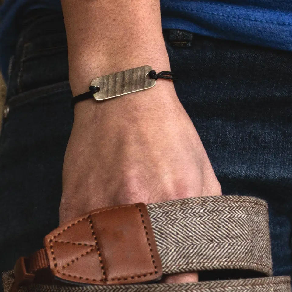 This bracelet isn’t just shaped like a bar—it’s named after the iconic 12-bar blues progression that’s the backbone of countless legendary tracks. Cymbal piece measures approximately 1.25" x 0.5". Adjustable black cord with button-style closure fits wrists up to 9 inches.