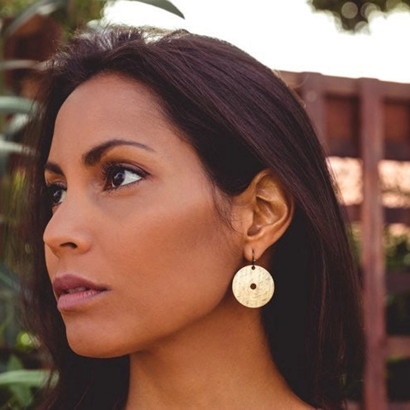A symbol of completion and continuity, these round dangle earrings represent the beauty of returning to where it all began. Made from reclaimed drum cymbals and polished to a smooth finish, the Full Circle earrings offer a timeless design with a meaningful touch.
