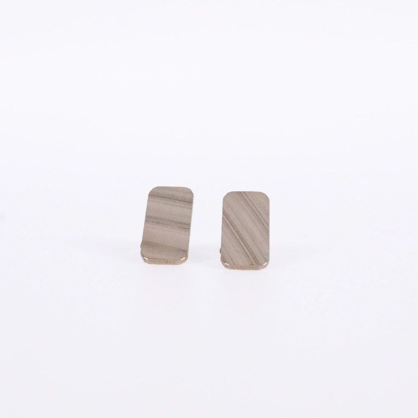 Subtle, elegant, and forged from rhythm. Short Bar earrings are made from reclaimed bronze drum cymbals, with visible ridges and hammer marks that hint at their musical past. Each sterling silver post is permanently soldered onto the cymbal piece, creating a sturdy and refined accessory that’s built to last.