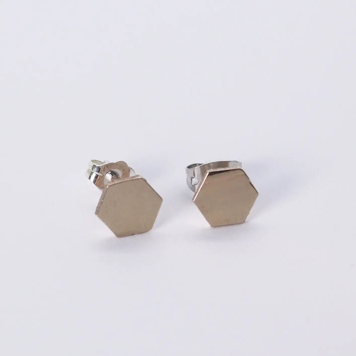 Geometry meets groove. These tiny hexagon earrings are cut from broken bronze drum cymbals—once cracked and discarded, now reimagined as everyday statement pieces. With a polished finish and hypo-allergenic sterling silver posts and backers, they strike the right note between clean lines and lived-in character.