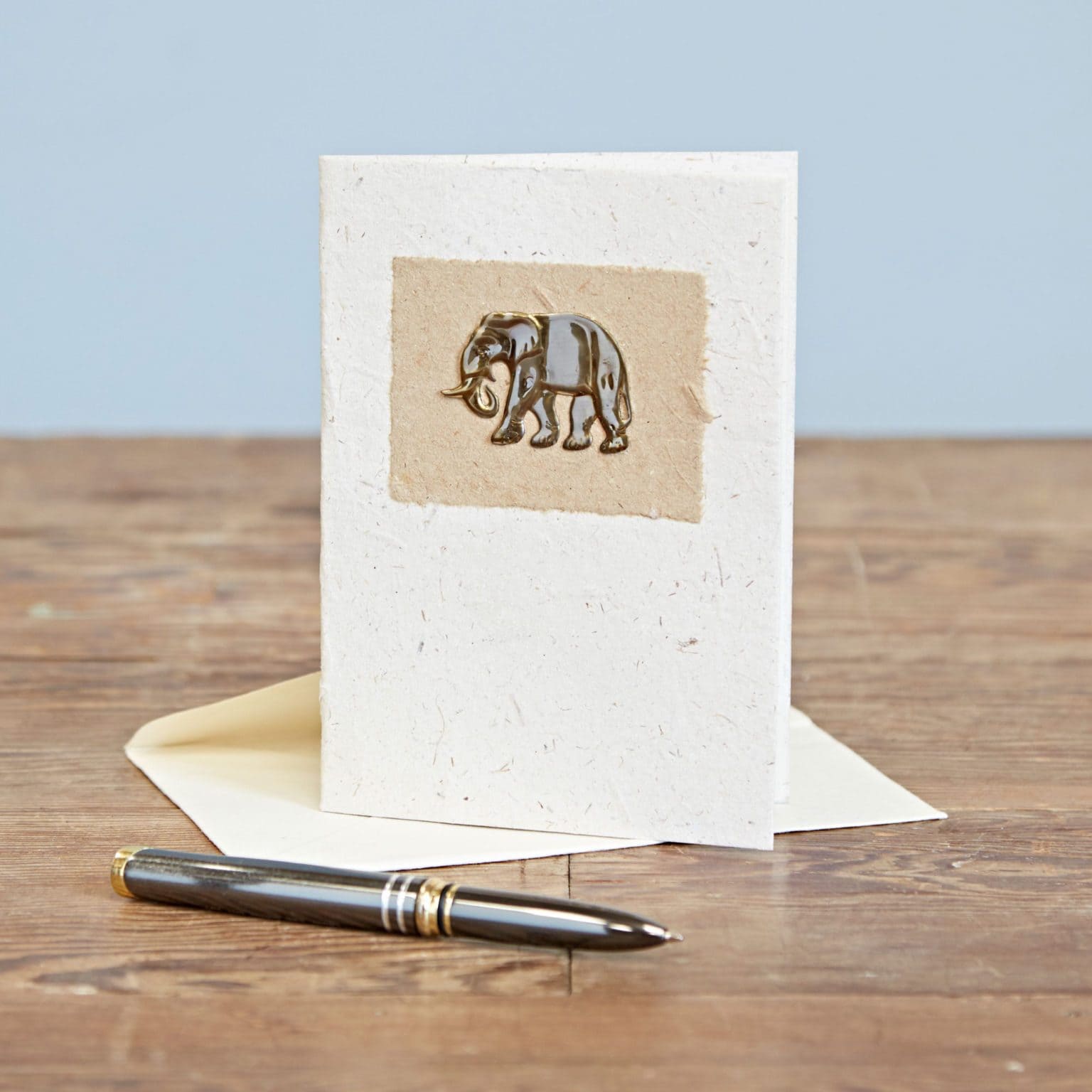 The paper comes from a charity in Sri Lanka that helps to look after old, disabled, and sick elephants, as well as to educate the local residents on the need to conserve the Sri Lankan elephant population. Each card has a hand-cut pressed brass elephant on the front, is blank inside, and comes with a matching envelope, also made from elephant dung.