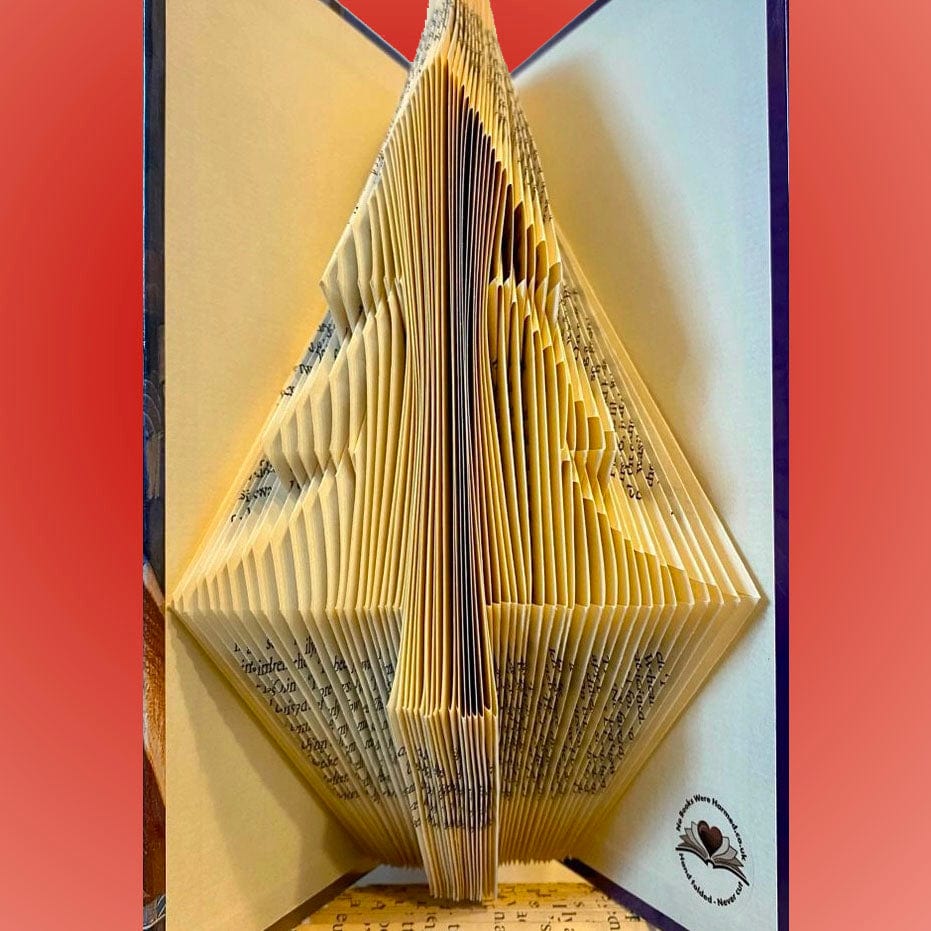 Festive, whimsical, and full of holiday cheer, this folded book sculpture forms a Christmas tree from carefully folded pages. A charming way to bring the spirit of the season to any corner, shelf, or tabletop—no needles required.