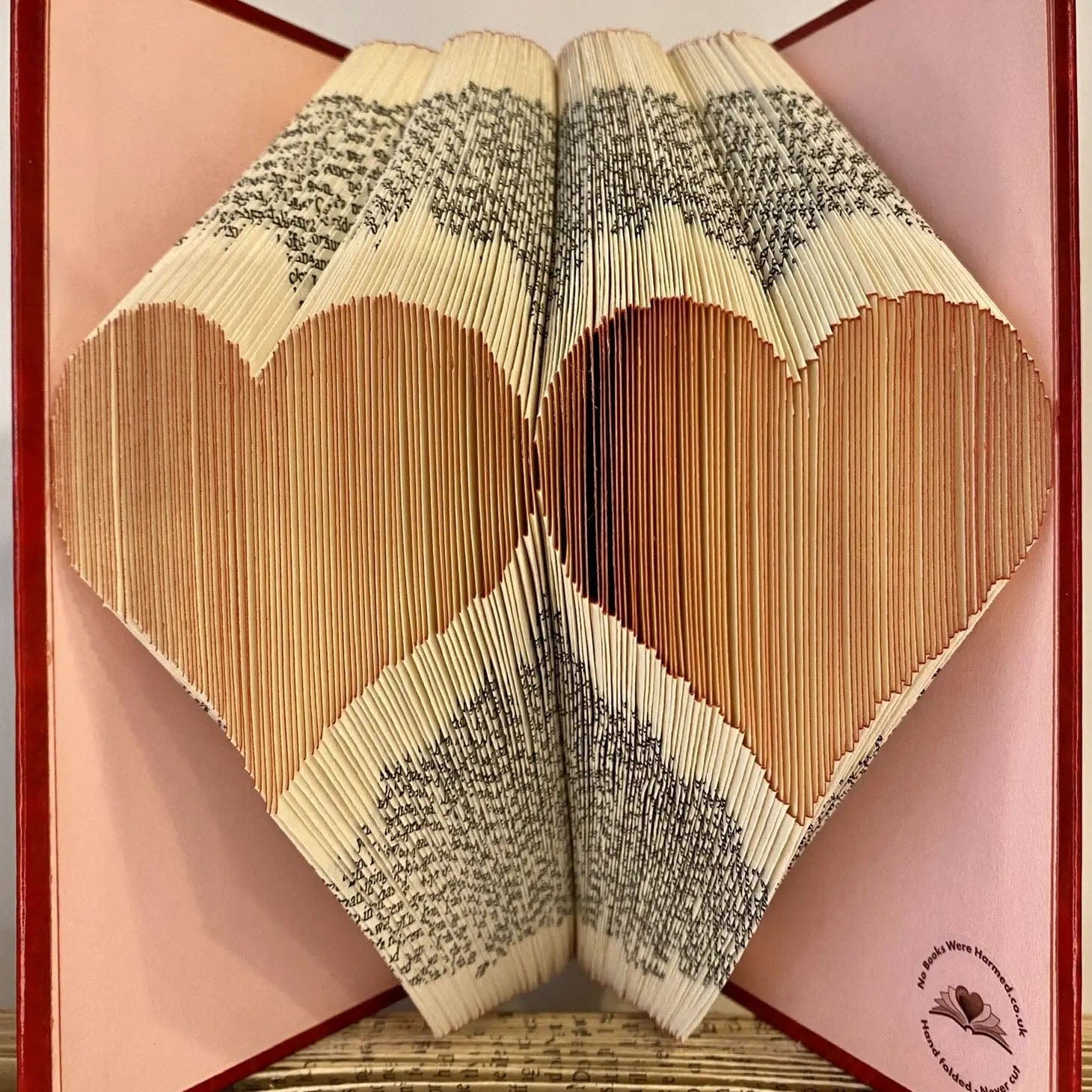Simple and sweet, this folded book sculpture features two hearts side by side. A subtle symbol of love and connection, perfect for desks, shelves, or any space that could use a little extra warmth.