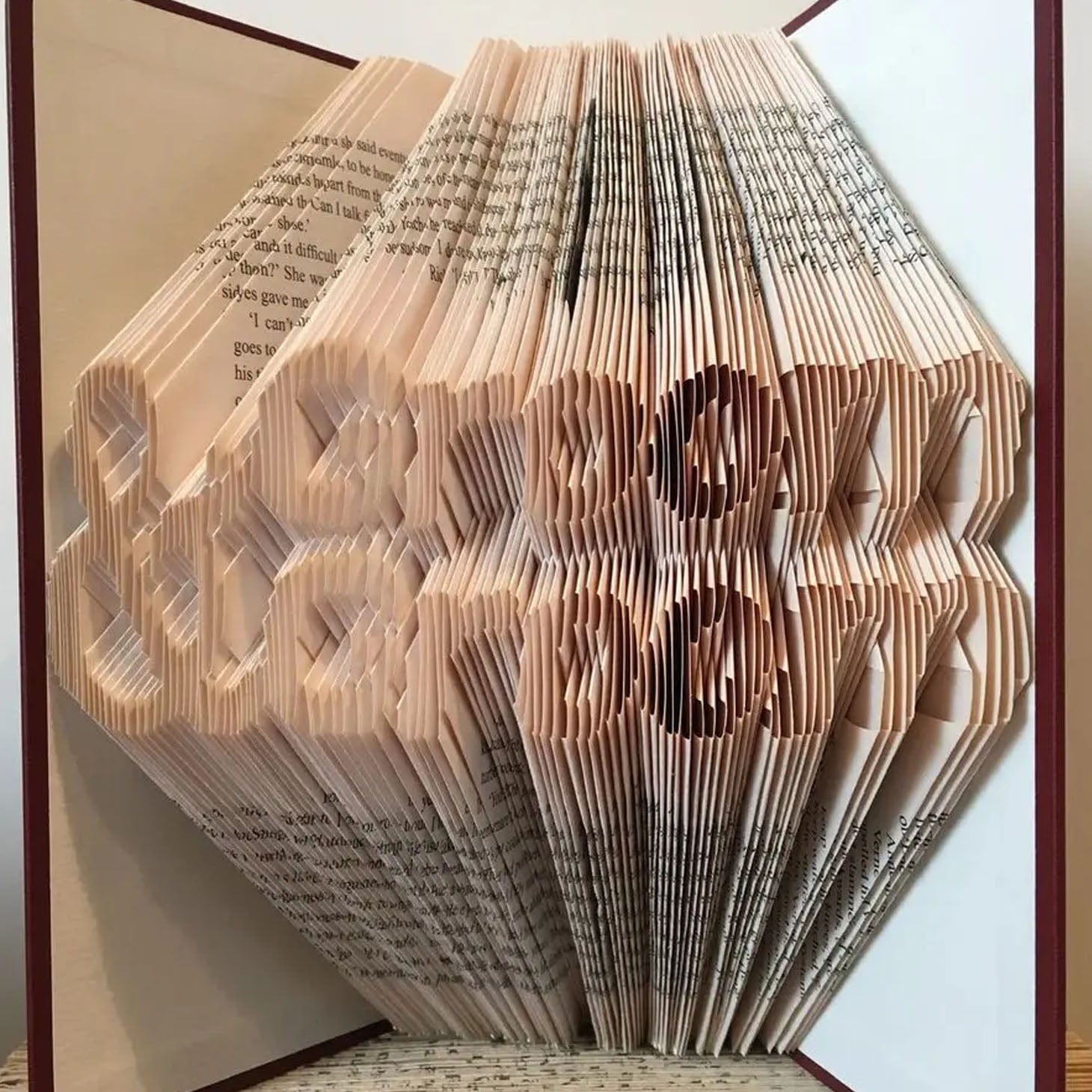 Celebrating love without the clichés, this folded book sculpture spells “Groom & Groom.” A charming, witty nod to weddings, anniversaries, or any couple who knows that two grooms are twice the fun.