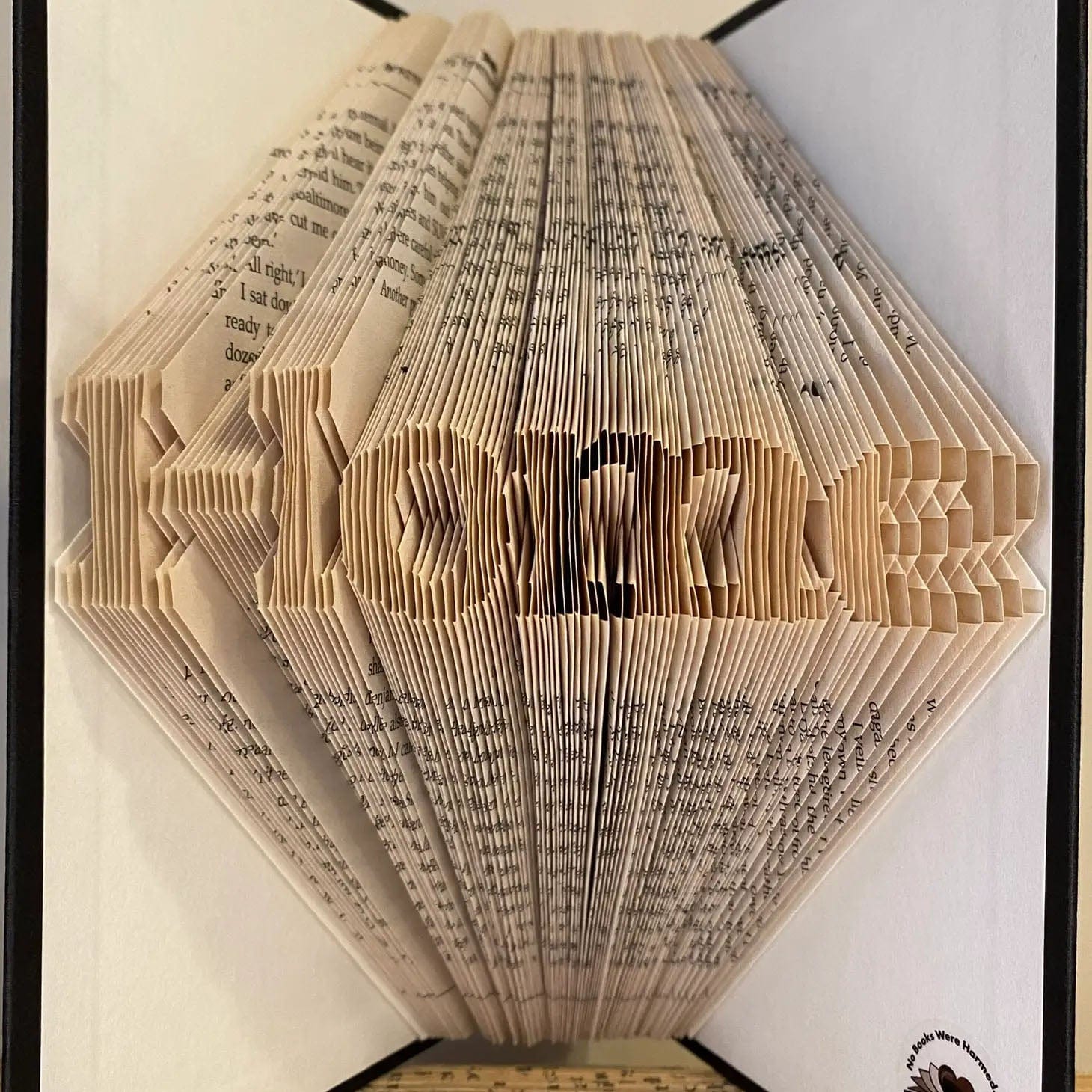 No Books Were Harmed creates every piece of their book art sculptures by making hundreds—or thousands!—of careful folds within the pages of reclaimed, preowned, and vintage hardcover books. It's all folded. Nothing you see has been cut, torn, or otherwise "trickified!"