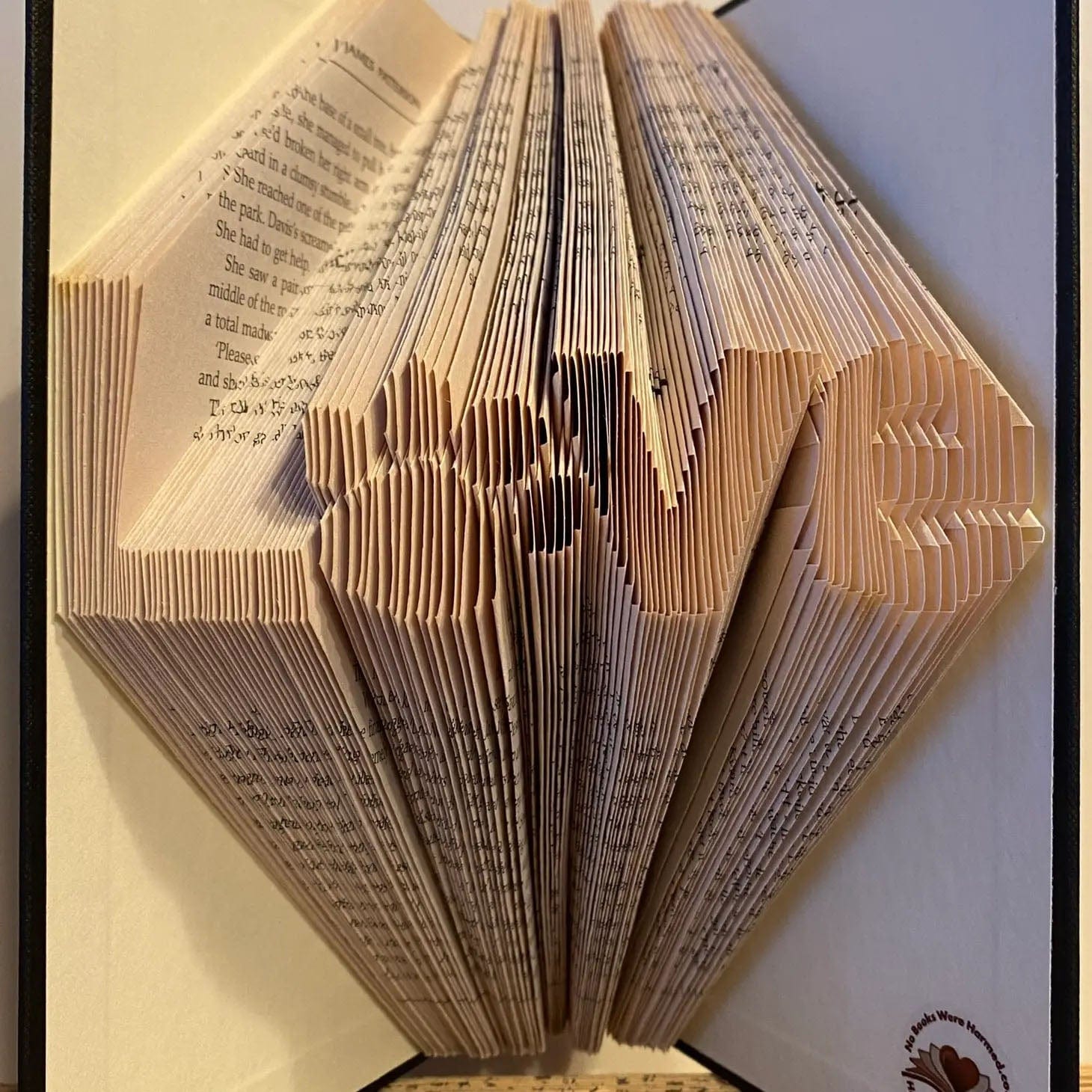 No Books Were Harmed creates every piece of their book art sculptures by making hundreds—or thousands!—of careful folds within the pages of reclaimed, preowned, and vintage hardcover books. It's all folded. Nothing you see has been cut, torn, or otherwise "trickified!"
