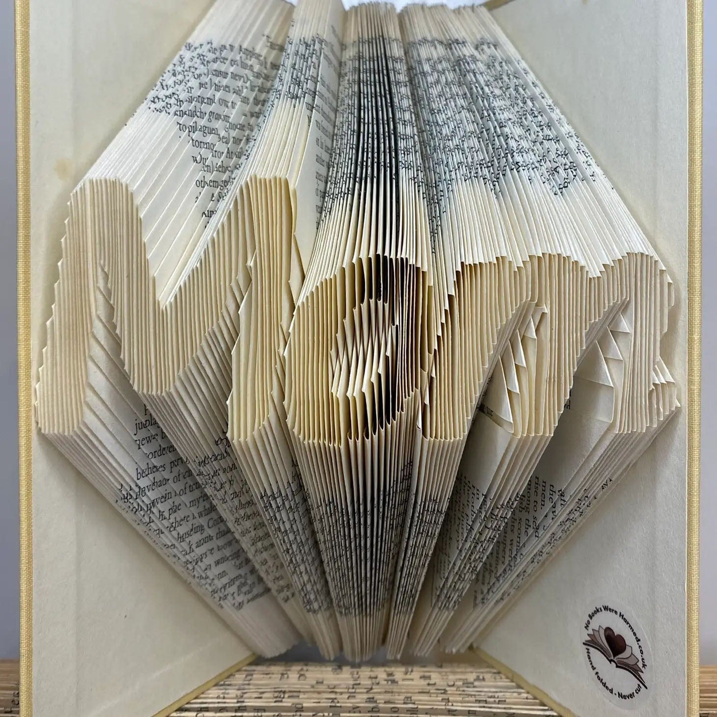 No Books Were Harmed creates every piece of their book art sculptures by making hundreds—or thousands!—of careful folds within the pages of reclaimed, preowned, and vintage hardcover books. It's all folded. Nothing you see has been cut, torn, or otherwise "trickified!"