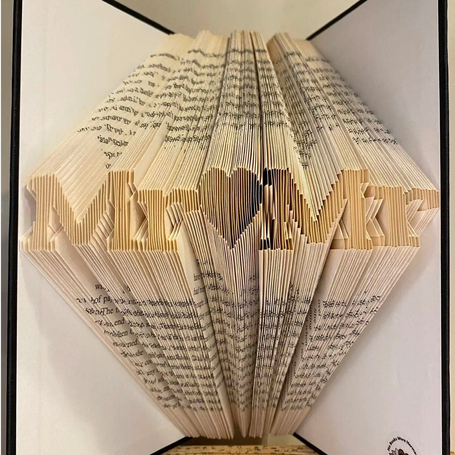 Celebrating love in all its forms, this folded book sculpture spells “Mr♥Mr” with a simple heart in the middle. A thoughtful gift for weddings, anniversaries, or any space that honors a shared life together.