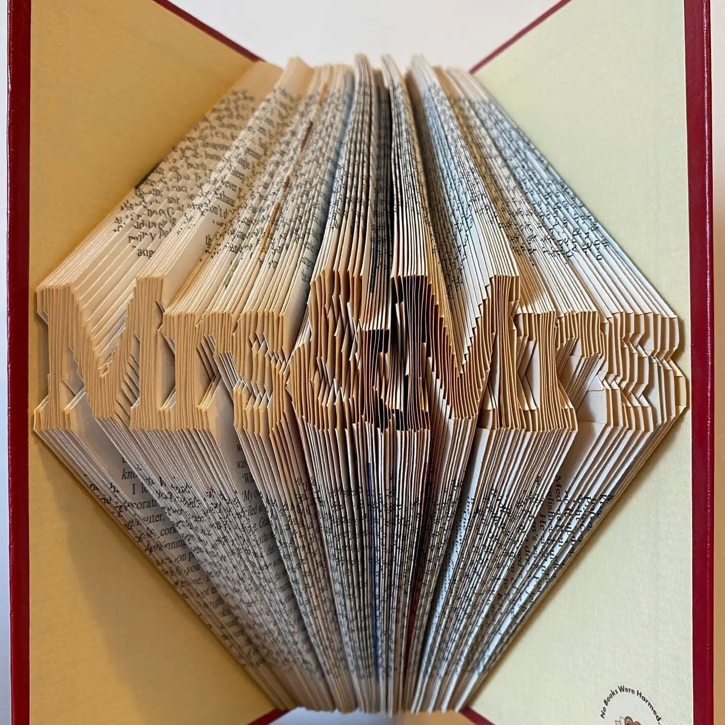 No Books Were Harmed creates every piece of their book art sculptures by making hundreds—or thousands!—of careful folds within the pages of reclaimed, preowned, and vintage hardcover books. It's all folded. Nothing you see has been cut, torn, or otherwise "trickified!"