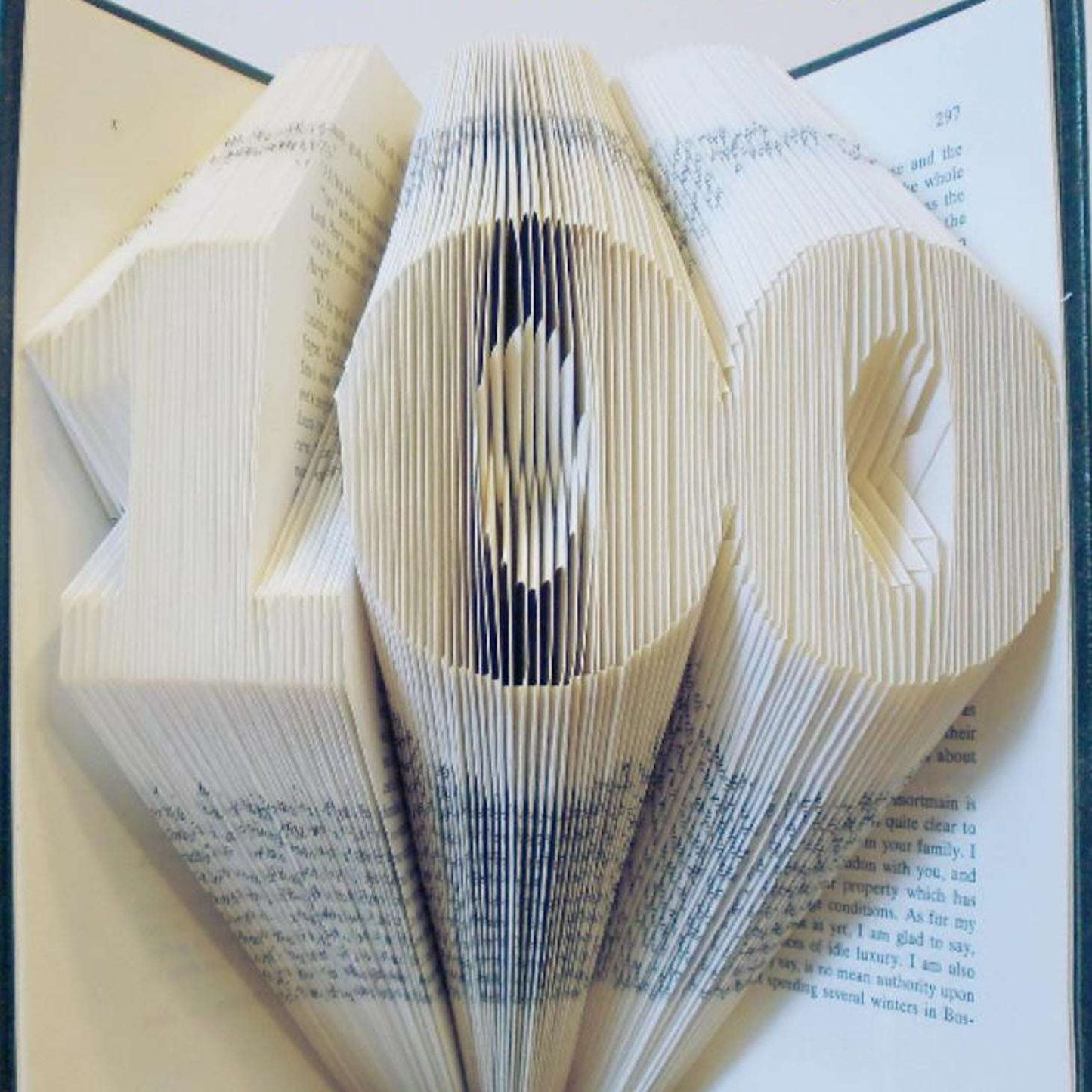 A perfect way to help your favorite bookworm mark a birthday! While we keep only certain milestones in stock on a regular basis, with enough notice Jo will be glad to fold any age for you! This listing is for three-digit ages. If you’re celebrating someone under 99, check out Folded Book Milestone Numbers.