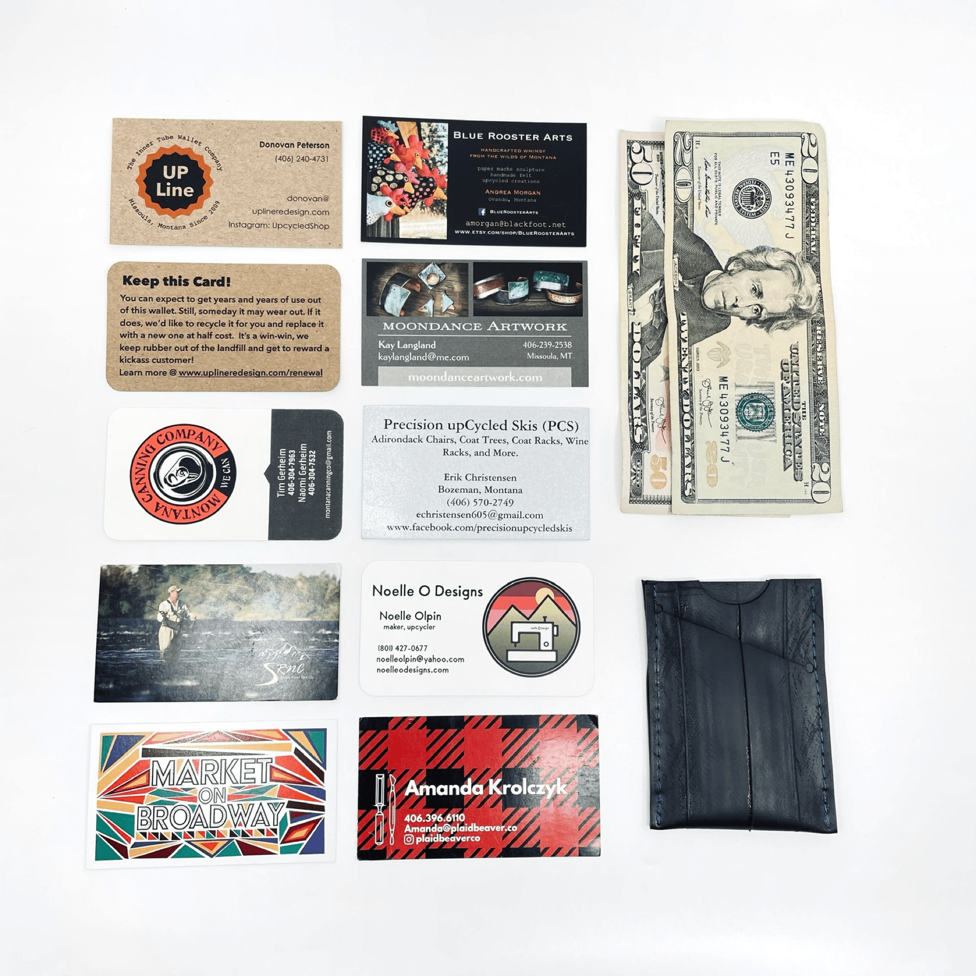 Up Line Redesign in Missoula, Montana, creates functional, durable wallets from discarded inner tubes. All wallets are backed by a 3 year warranty.