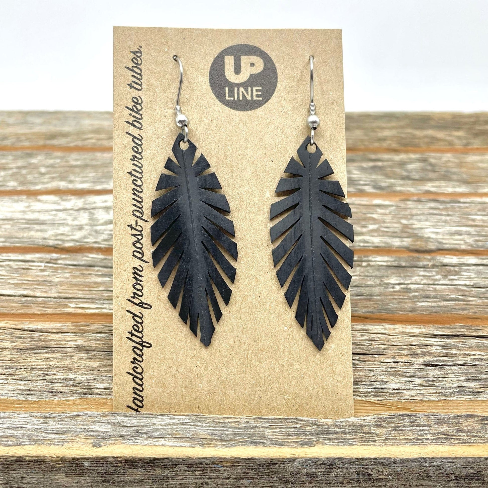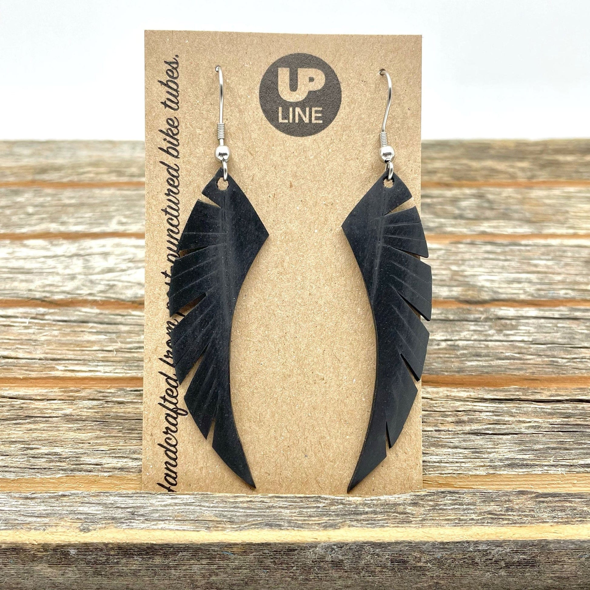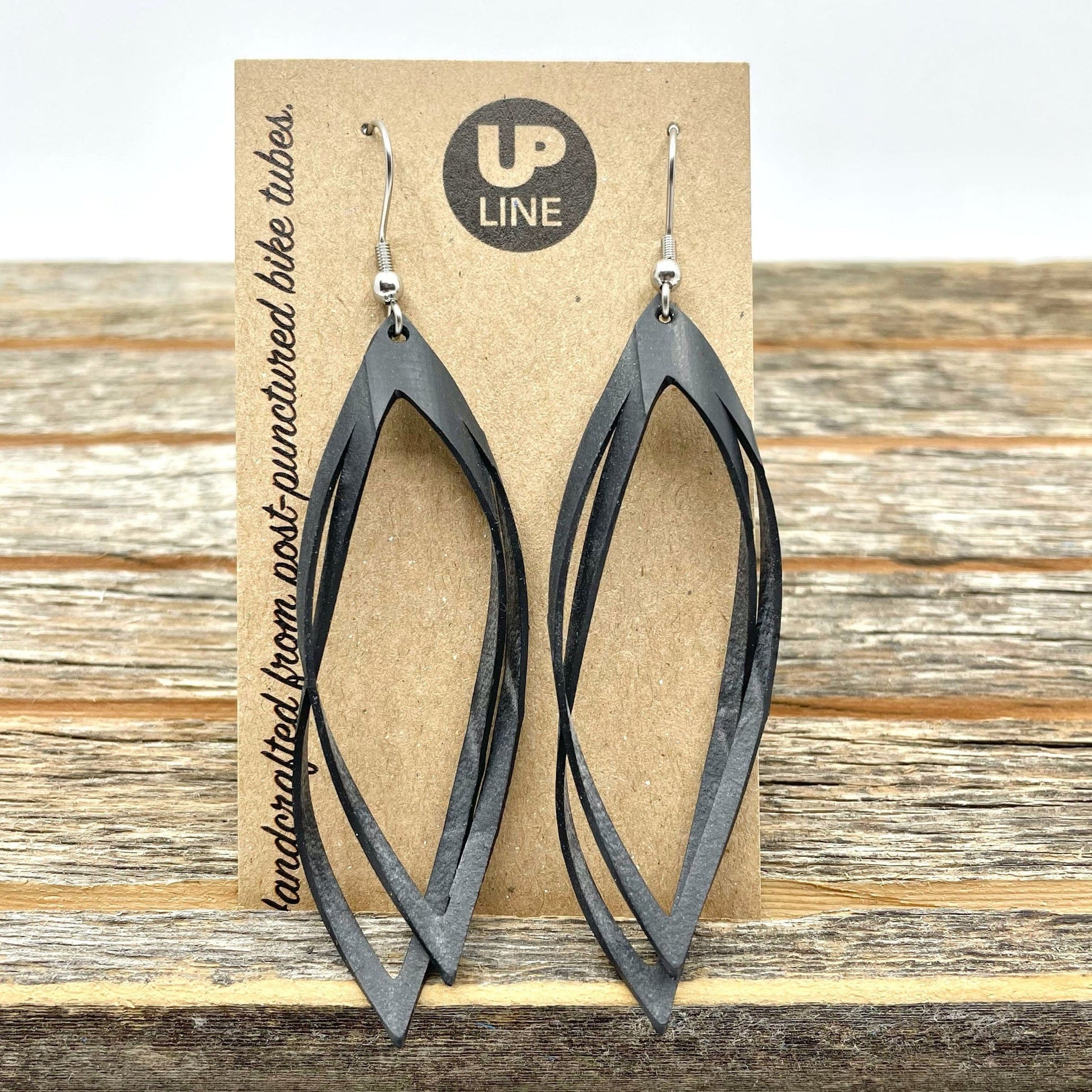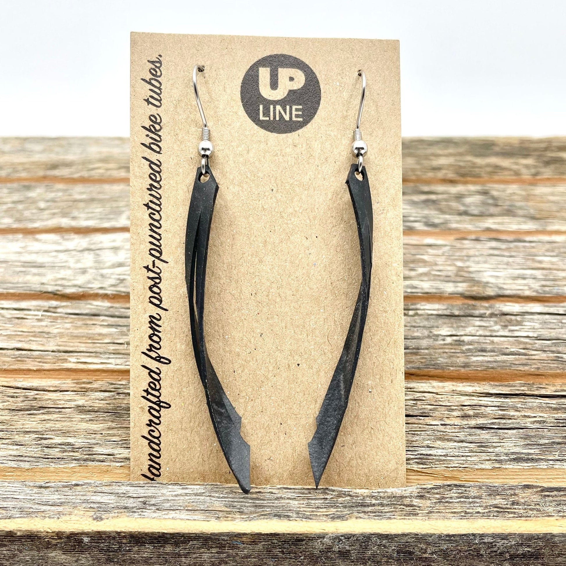 Donovan at Up Line makes some of our all-time favorite wallets, but when he's creating them from inner tubes there are offcuts too small to use for another billfold. Because of his concern for the environment, industrious guy that he is, he decided to create these Inner Tube Scrap Earrings. They're both elegant and sustainable.