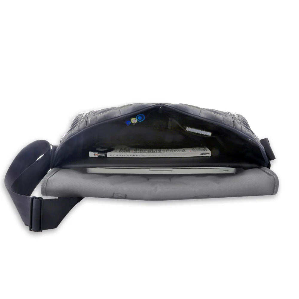 Meet the Jefferson—a messenger bag with a past. Built from reclaimed bicycle inner tubes, it’s got the clean, modern lines you’d expect from an urban essential, with a story that starts on the road.