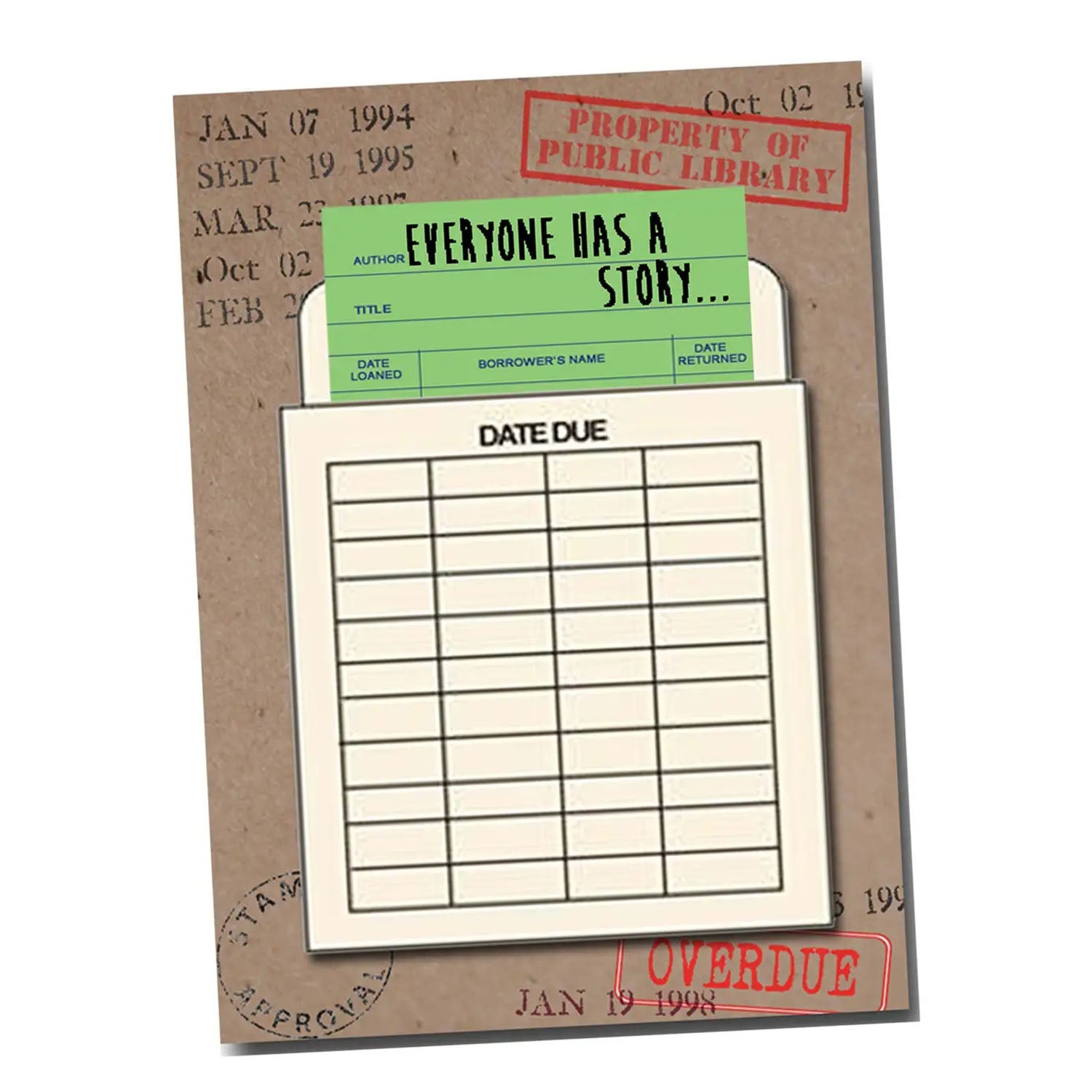 This greeting card brings back the charm of old library books with a nostalgic twist. Each card is printed on heavyweight kraft paper and has a classic library book pouch affixed to the front, just like the ones found in well-loved library books of the past. Tucked inside is an authentic vintage date due card, printed with a special message. The card slides in and out of the pouch, making it a unique keepsake that can be displayed, reused, or even repurposed as a bookmark.