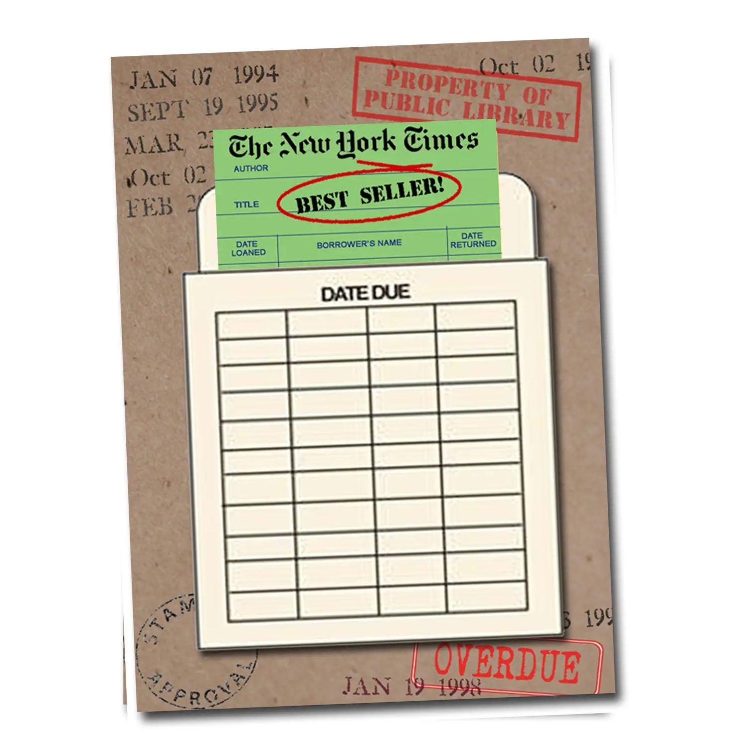 This greeting card brings back the charm of old library books with a nostalgic twist. Each card is printed on heavyweight kraft paper and has a classic library book pouch affixed to the front, just like the ones found in well-loved library books of the past. Tucked inside is an authentic vintage date due card, printed with a special message. The card slides in and out of the pouch, making it a unique keepsake that can be displayed, reused, or even repurposed as a bookmark.