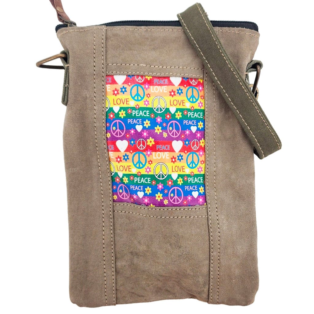 Military Tent Small Crossbody Bag - Peace Love Rainbow