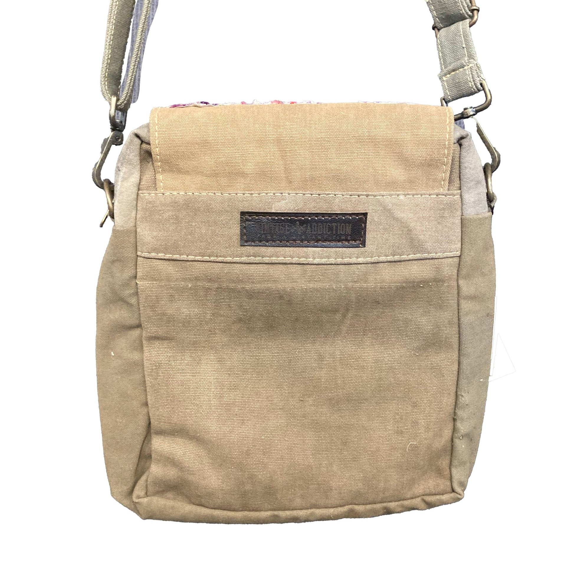 Military Tent Crossbody Bag with Vintage Fabric Trim
