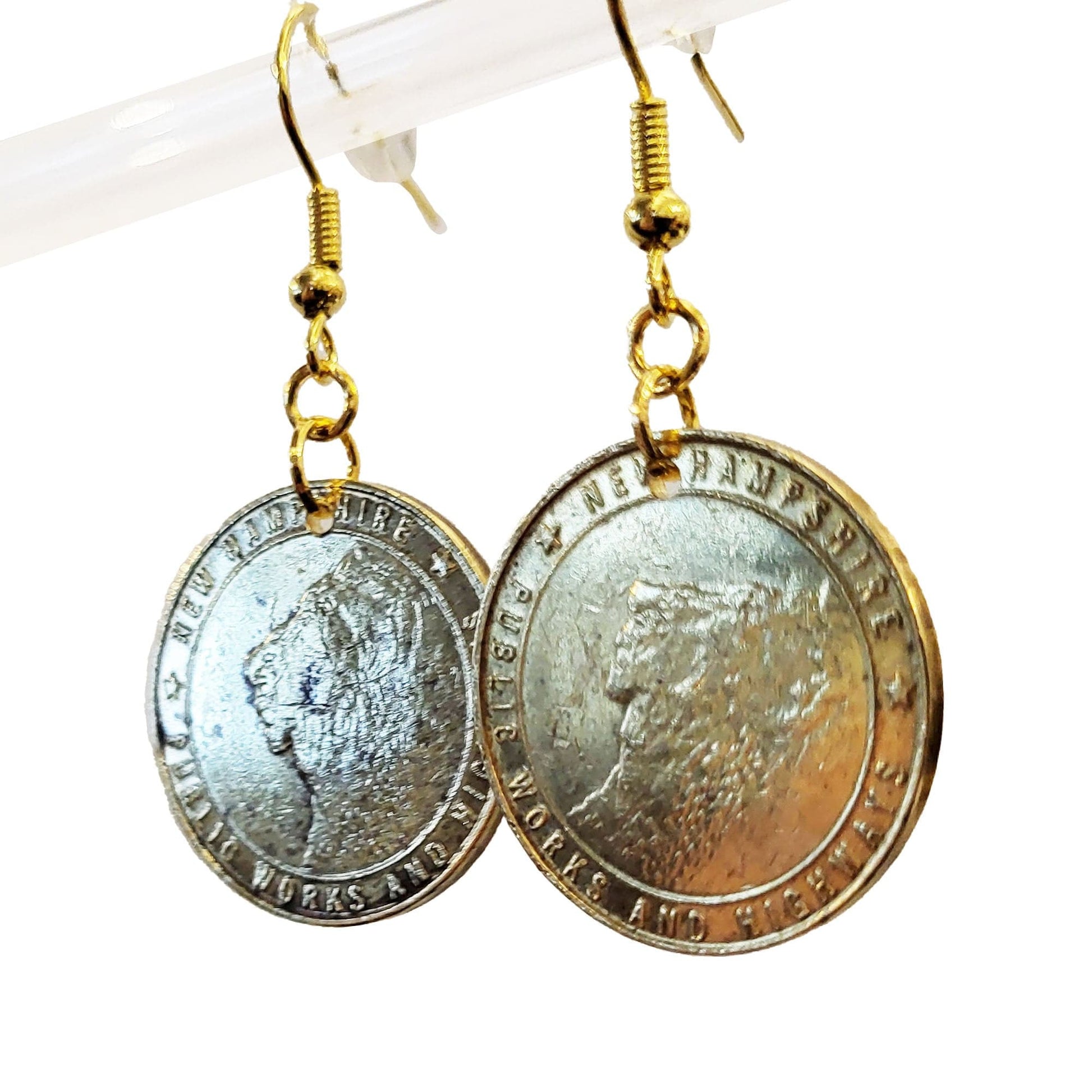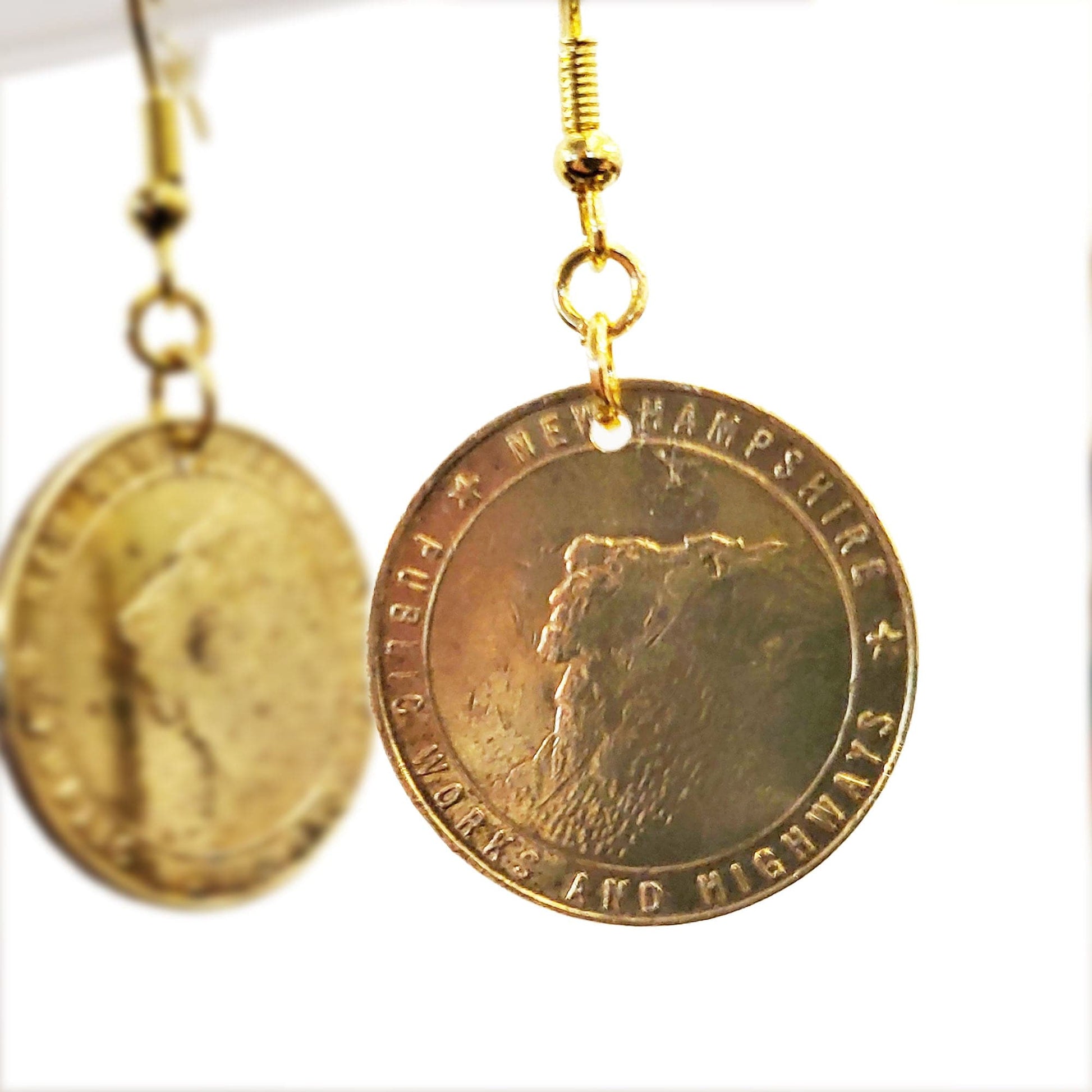 Both sides of the tokens say NEW HAMPSHIRE PUBLIC WORKS AND HIGHWAYS around the edge and feature the Old Man of the Mountain in the center. The Old Man was a rock formation in Franconia Notch that became the official emblem of New Hampshire in 1945. It was even used on the New Hampshire state quarter in 2000. The Great Stone Face, as it was sometimes called, collapsed early in the morning of May 3, 2003.