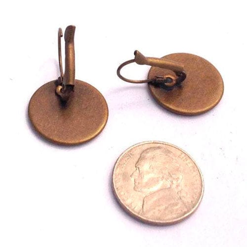 This is a pair of French clip earrings in an antique bronze finish and features a 1969 6¢ United States stamp called "Plant For More Beautiful Streets" from the beautification of America series. The Stamp depicts a highway surrounded by lush meadows.