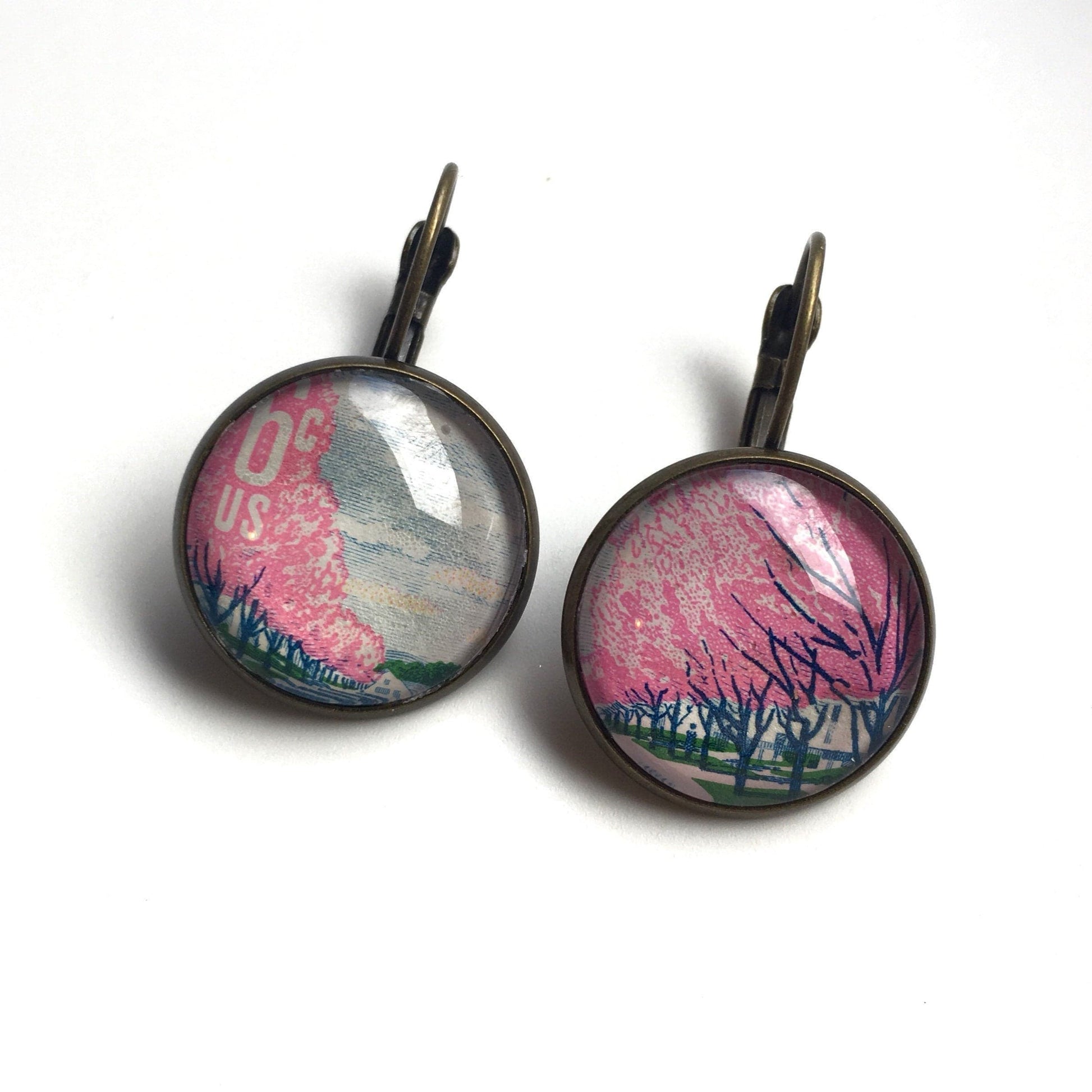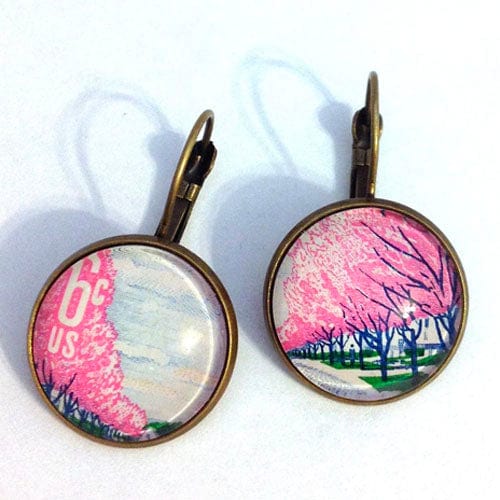Postage Stamp Earrings - 1960 USA Cherry Blossom