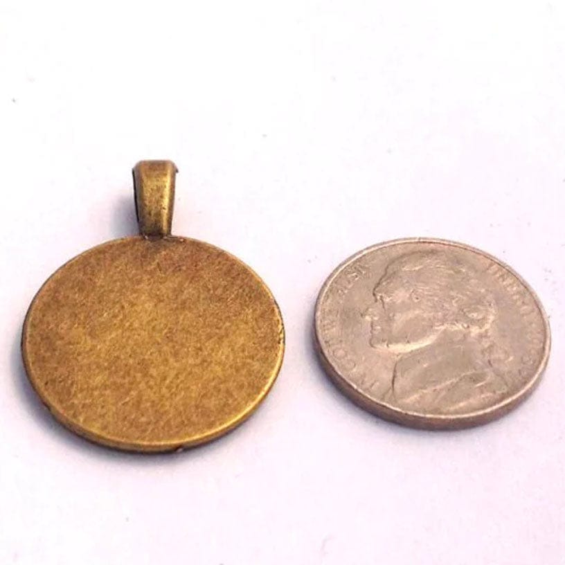 Size of the pendant is 20mm and the chain is 18 inches long in a matching antique bronze finish with a lobster clasp.