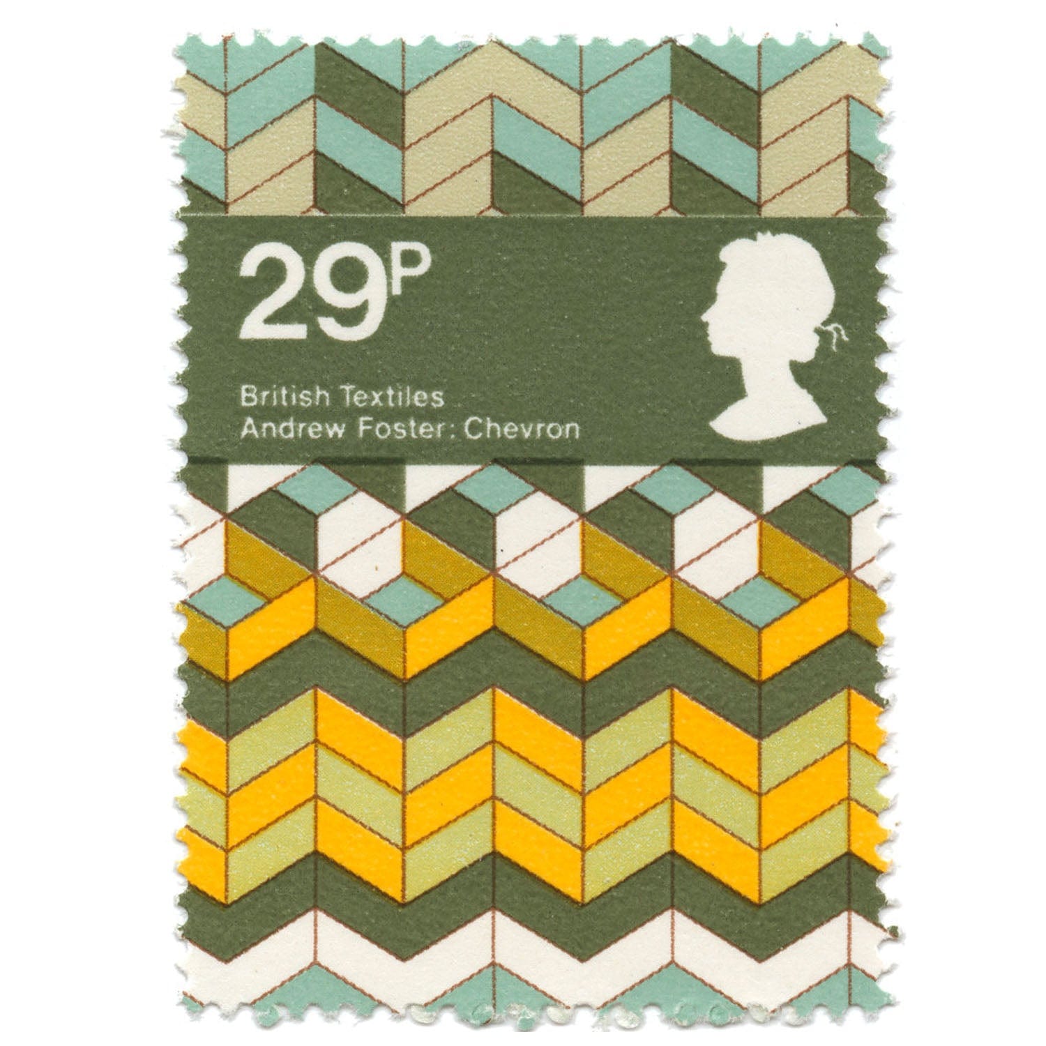 Postage Stamp Necklace - 1982 UK Chevron British Traditional Textile