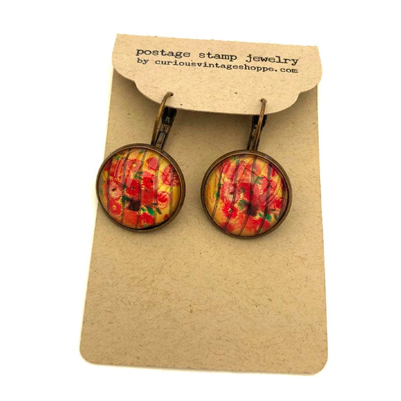 Postage Stamp Earrings - 1960 USA Cherry Blossom