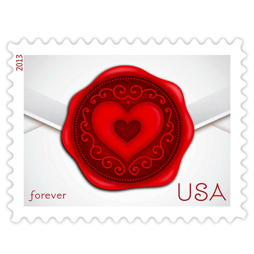Evoking the romance of a bygone era, the U.S. Postal Service 2013 Sealed with Love (Forever) stamp expresses the joy and beauty of handwritten love letters. The stamp art depicts an envelope fastened with an elegant wax seal. The seal, in shades of red, is a small heart enclosed inside a larger heart, both surrounded by a graceful filigree circle. The exquisite delicacy of the stamp art invites us to send our own love letters, a romantic gesture that never goes out of style. The Victorians were ardent letter writers and believed that there was a proper way to compose letters, particularly love letters.