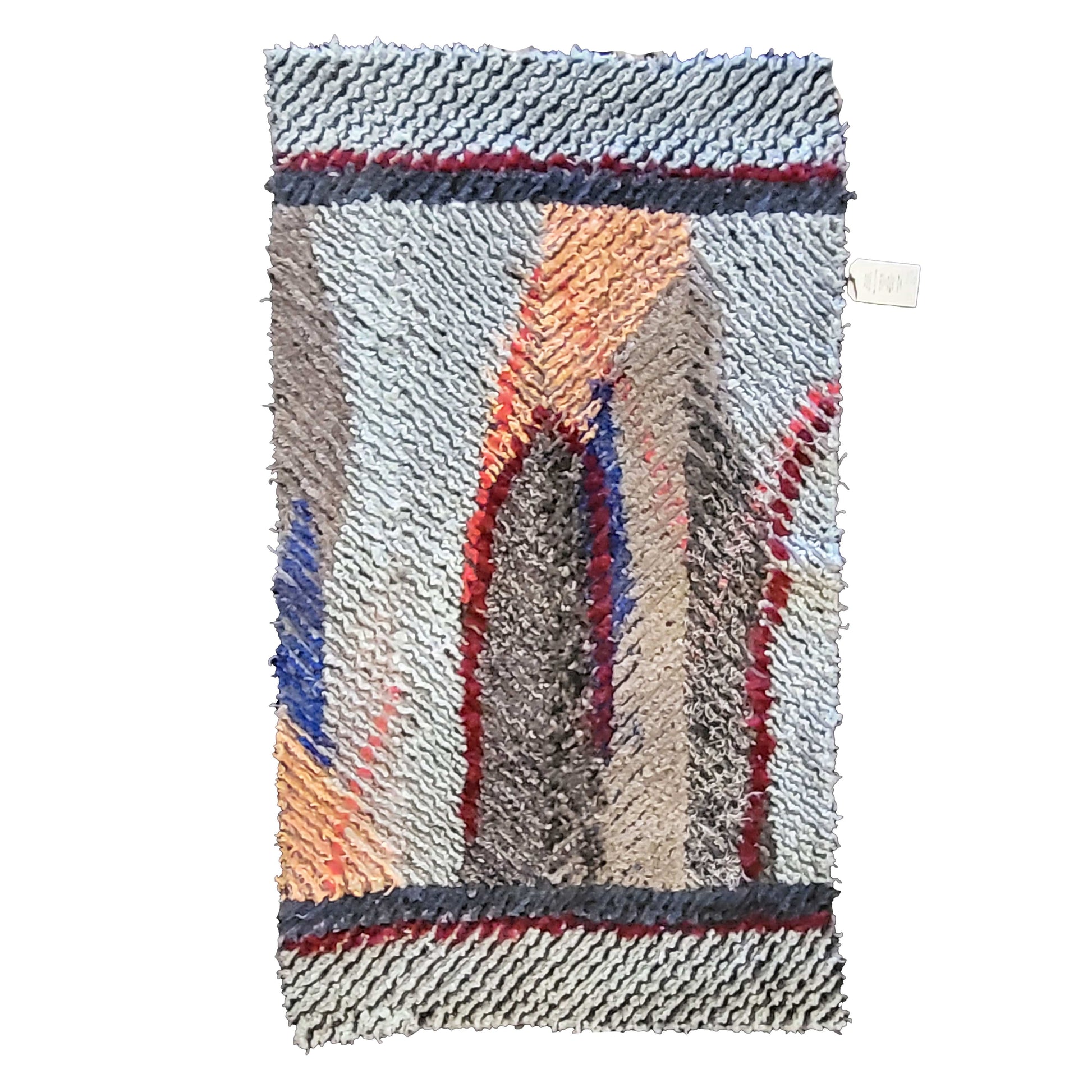 Created by longtime Truro resident Martha Magane, these rugs are crafted from old jeans, blankets, sweaters, tablecloths—whatever the artist can find that works for her designs. She sews layers of various textiles on the bias to a denim backing, then cuts between her stitching. After piecing together a rug, she hand washes and scrubs it to raise the nap, creating a chenille from the various fabrics.