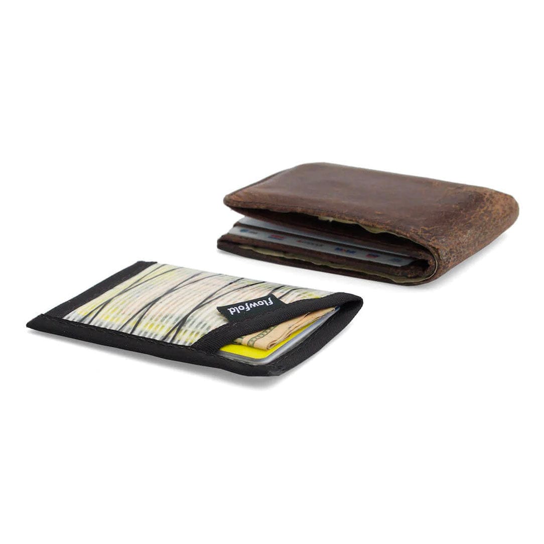 This is minimalist versatility at its finest: a beautifully simple wallet for cards and folded cash, crafted from recycled racing sail cloth. Designed for the straight shooter with no interest in excess features, the Minimalist wallet is both purposeful and versatile. It has a single slot that can fit six to eight cards and a few folded bills. The sleek outline fits seamlessly in the front pocket of your favorite jeans or tucked away in a day bag. If you find most wallets cumbersome, check out the simple and clean Minimalist. Comes with Flowfold's Lifetime Guarantee. Made in Maine, USA.