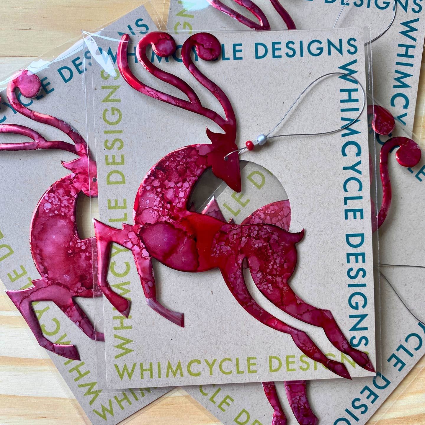 This red Reindeer looks to us like he’s checking to see if the sleigh is still back there.