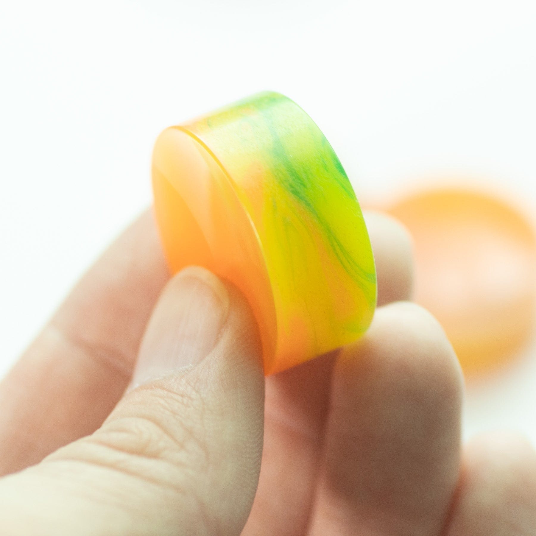 Bowlerite Worry Stone - Trixie (fluorescent yellow/tangering/green/blue)