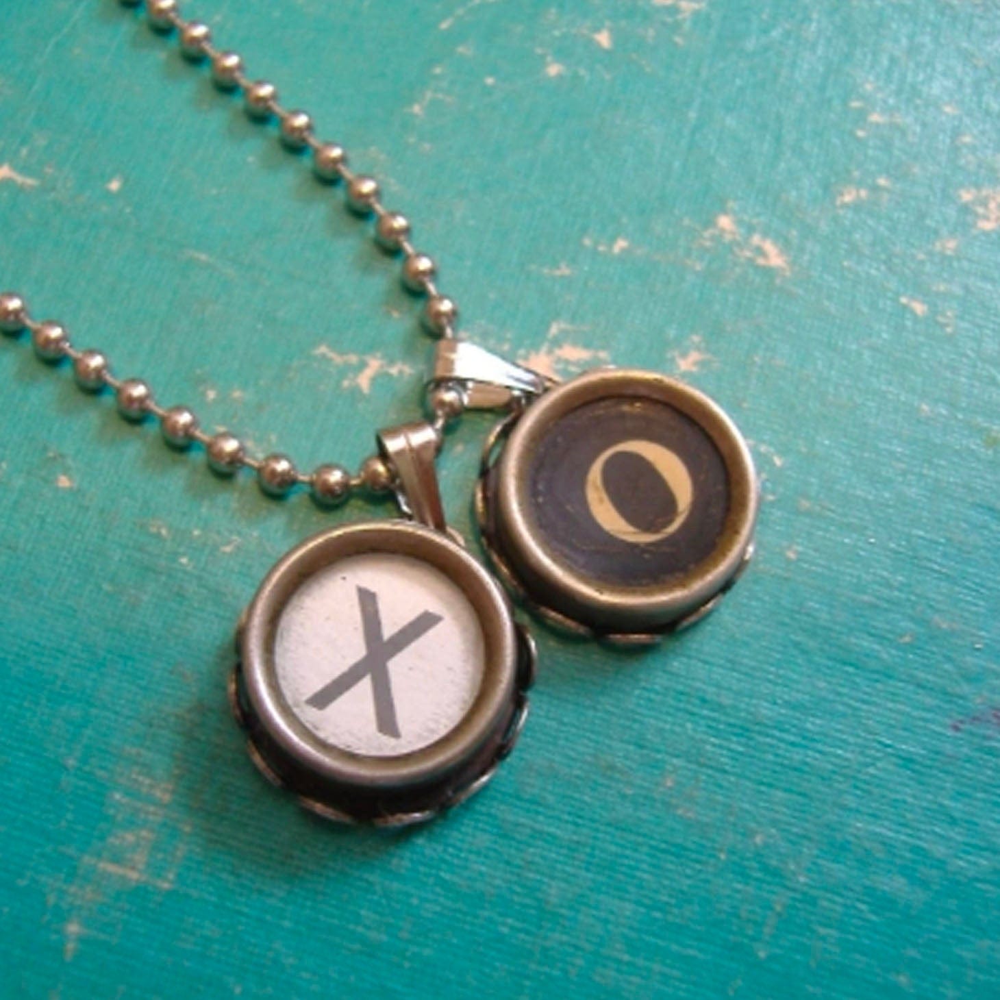 For the writer in all of us, this stylish necklace features two antique typewriter keys in the shape of hugs and kisses! Show your appreciation of the written word with this cute and quirky accessory that's sure to spark conversation. Pairings may both be black keys, both light keys, or one of each.